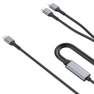 Dual USB-C charging cable with intelgent power distribution supporting up to 140W, PD/PPS protocols and 480Mbps data transfer. 1.8m total length with a 1.5m lead before the spt.