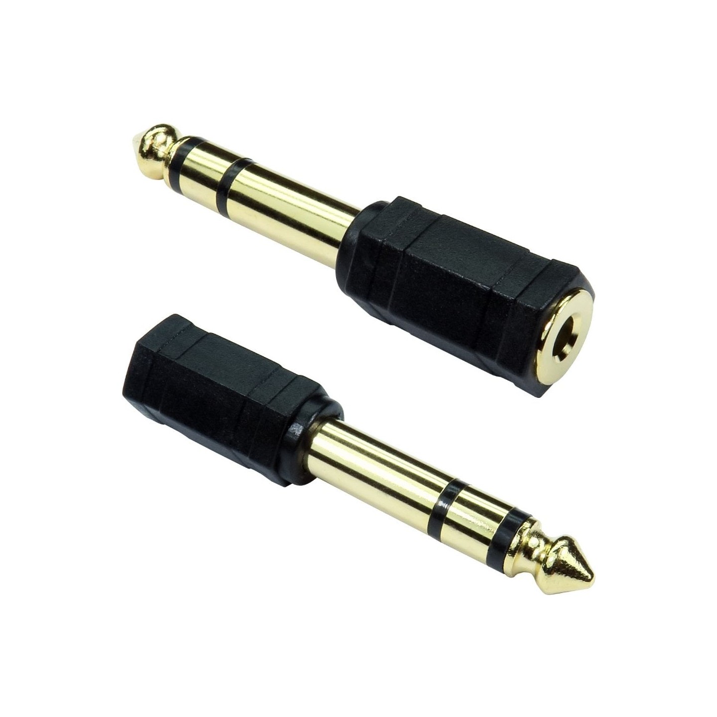 The stereo adapter is for converting a 6.35mm port to standard 3.5mm stereo port or vice versa. These type of connectors can also be referred to TRS or Tip Ring Sleeve.