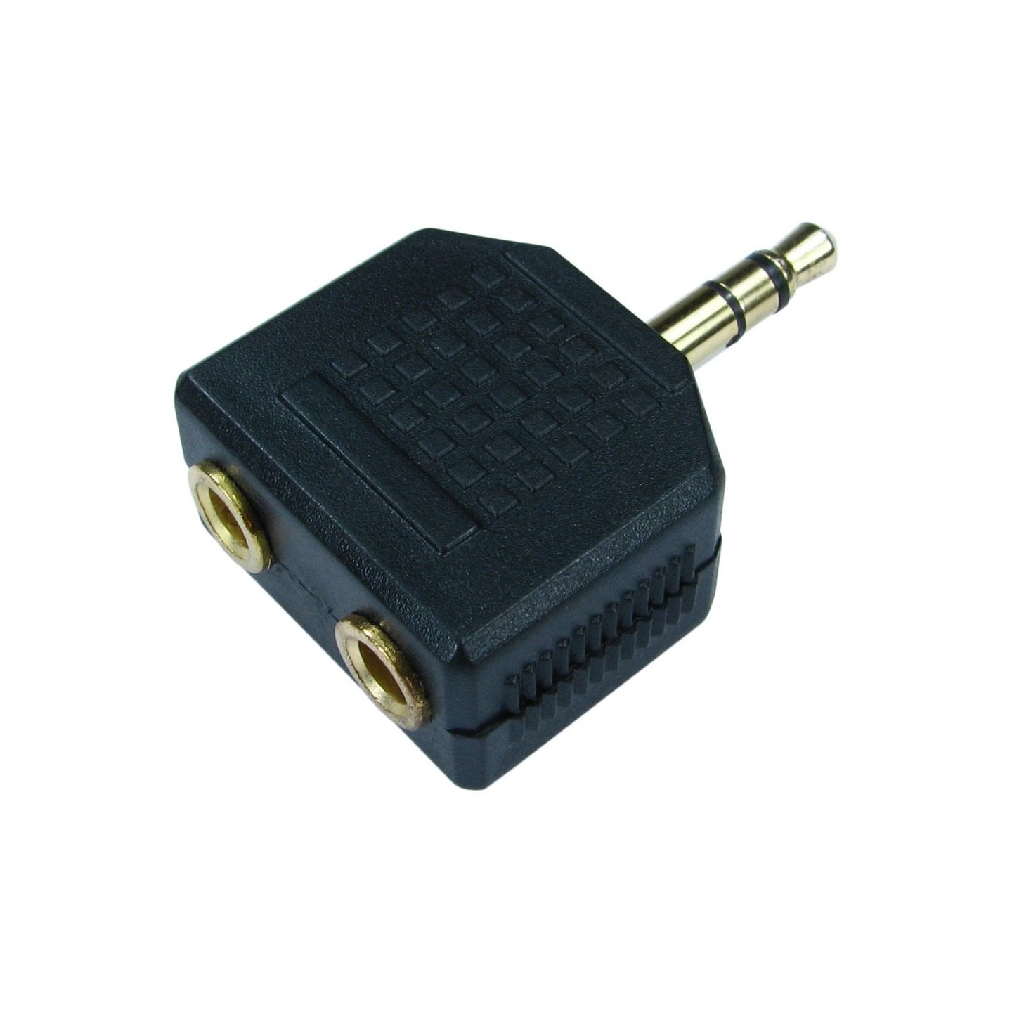 Stereo splitter adapter with one 3.5mm male to two 3.5mm female sockets, ideal for splitting sound sources such MP3 players so two people can listen. Gold flashed contacts for a higher quality finish while providing anti-corrosive properties.