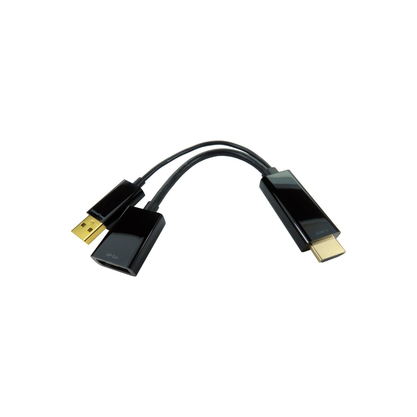 The HDPORT-0054K-CABREV is a HDMI to DisplayPort adapter which allows you to transmit a video signal from a HDMI source (PC etc..) to a DisplayPort monitor. The product supports DisplayPort v1.2 and resolutions up to 4096 x 2160 @ 60Hz. It is also equipped with USB-A port to supply power in the event the HDMI source doesn't provide enough power.