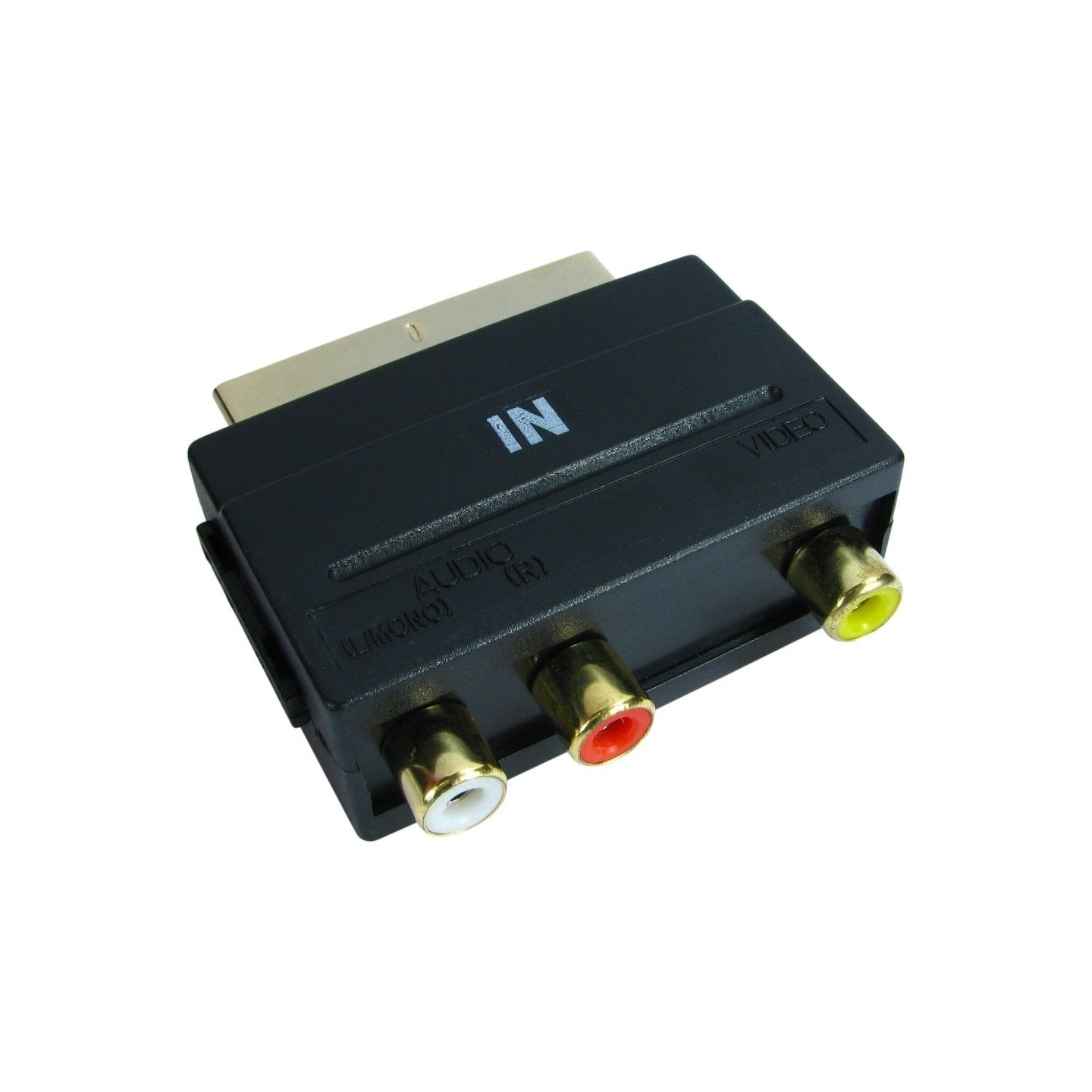 This SCART adapter is configured for input only and has left/right audio and composite video female RCA connectors. Gold connectors for a higher quality finish while providing anti-corrosive properties.