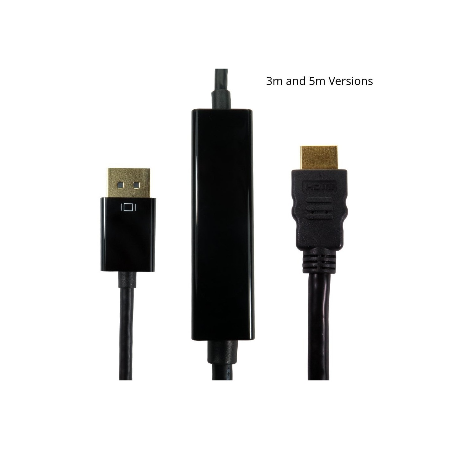 The HDPORT-0054K-* range are DisplayPort v1.4 to HDMI cables. They allow you to transmit a video signal from your host PC with a DisplayPort socket to a HDMI monitor. They support a maximum resolution of 4K @ 60Hz.The 1m and 2m models support HDR, the 3m and 5m models do not.