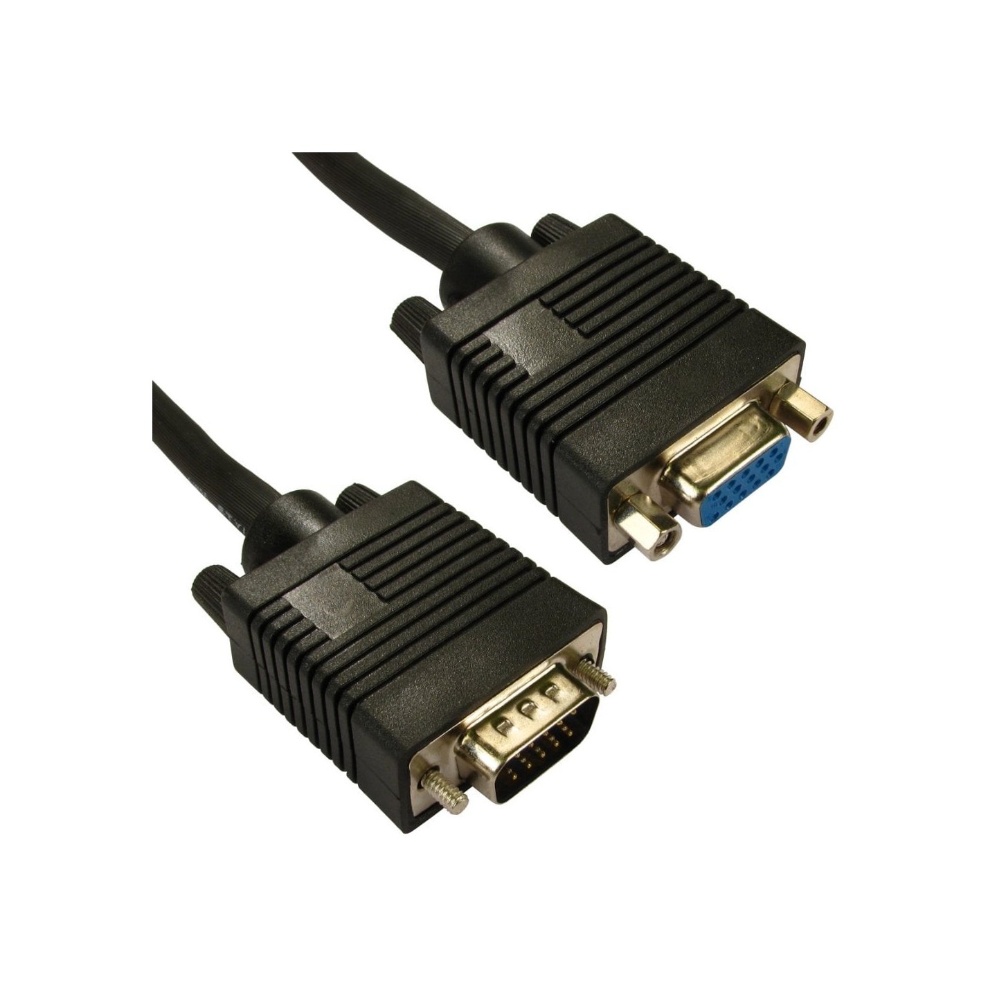 Our range on Super VGA cables are constructed using UL2919 approved 28AWG triple mini coaxial and 5 30AWG conductor cables, this allows them to be used for extended distances. Triple shielded with copper braid, foil and drain wire. Our cables are designed for standard monitors and may not work with widescreen LCD's that require DDC cable.The male to female cables are primarily used as extension cables, or to connect to the Video Splitter or SVGA CAT5E Extender.
