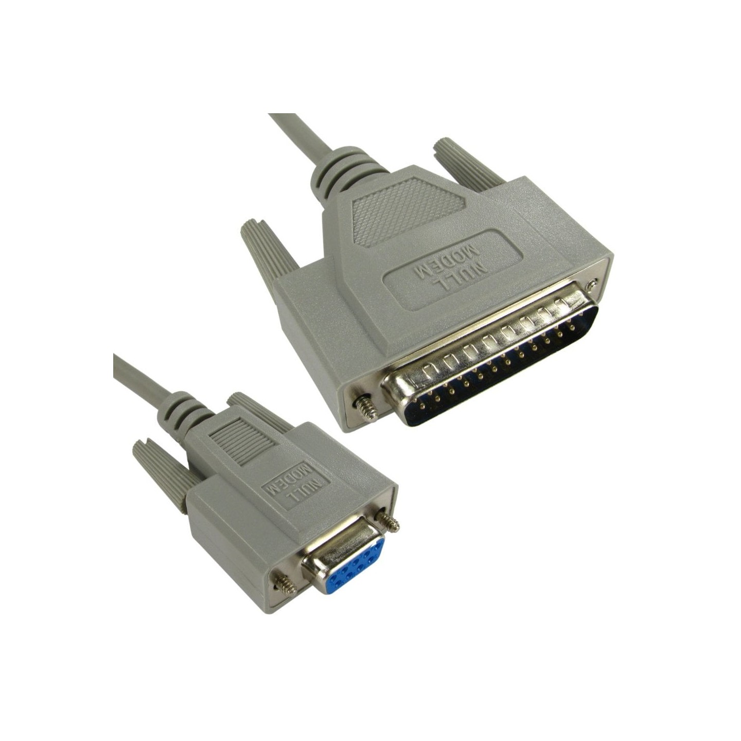 D9 female to D25 male null modem cable allowing you to connect a 9-pin serial device to a 25-pin serial port, or transfer files from PC-to-PC via a serial connection.