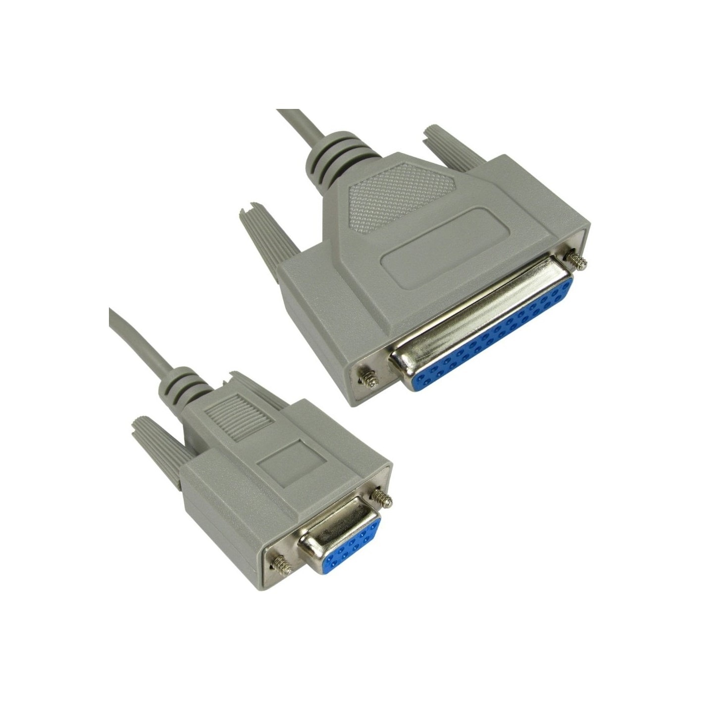 D9 female to D25 female Null Modem cable allowing you to connect a 9-pin serial device to a 25-pin serial port, or transfer files from PC-to-PC via a serial connection.