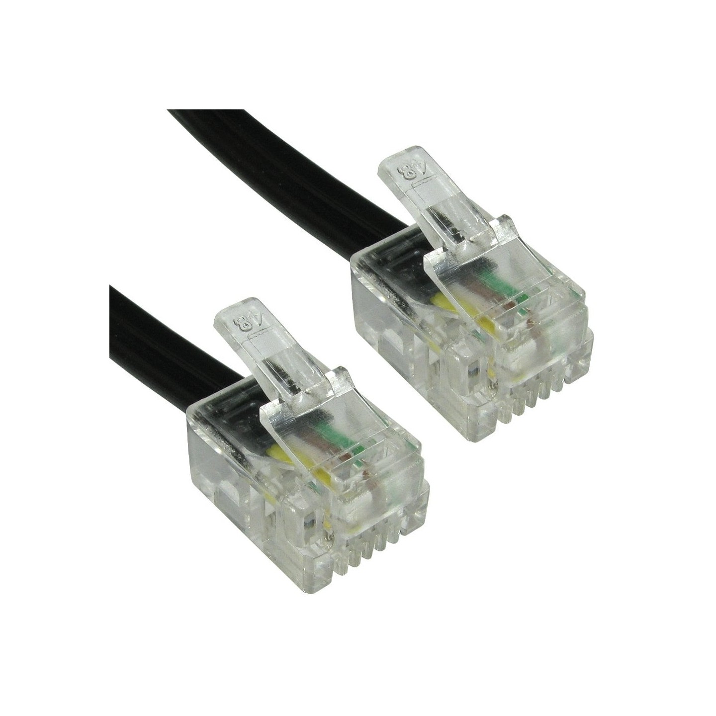 RJ11 to RJ11 Modem cable with a straight through configuration. Copper cores provide better conductivity. The cable is available in either black or white.