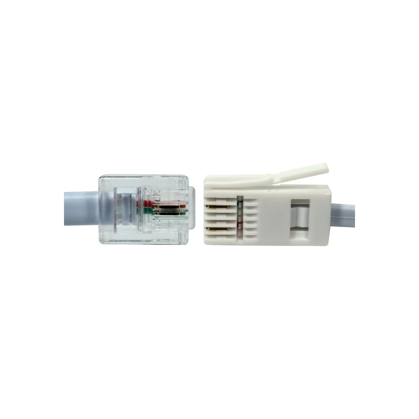 RJ11 to BT Plug 2 wire modem cable with crossover configuration.