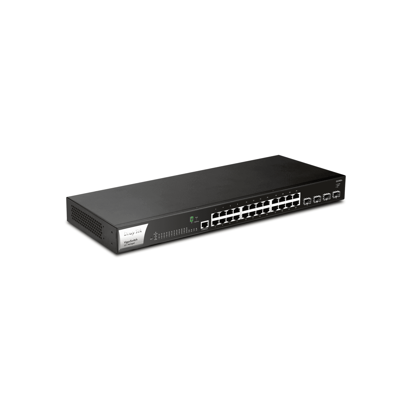 The VigorSwitch 2282x Series is a feature rich, high performance, L2+ managed Gigabit Ethernet switch with 24 1-Gigabit RJ-45 LAN ports and 4 10-Gigabit Ethernet SFP+ ports. Use the SFP+ interfaces for high-speed uplinks between switches, servers and network attached storage devices at up to 10Gbps per port.Our cutting-edge networking switch with power redundancy options allows seamless operation and minimized downtime. This versatile switch comes equipped with both DC and AC power options, providing ultimate flexibility to cater to your unique power requirements.The PoE VigorSwitch P2282x comes with 24 Power over Ethernet (PoE) ports, allowing you to easily power and connect multiple devices such as IP cameras, wireless access points, and VoIP phones.With a total power output of 400 watts, ensures stable and efficient power distribution, eliminating the need for additional power cables and adapters. The switch is also equipped with advanced management features, including VLAN support, QoS prioritization, and remote monitoring, making it ideal for use in small to medium-sized businesses and enterprise environments.