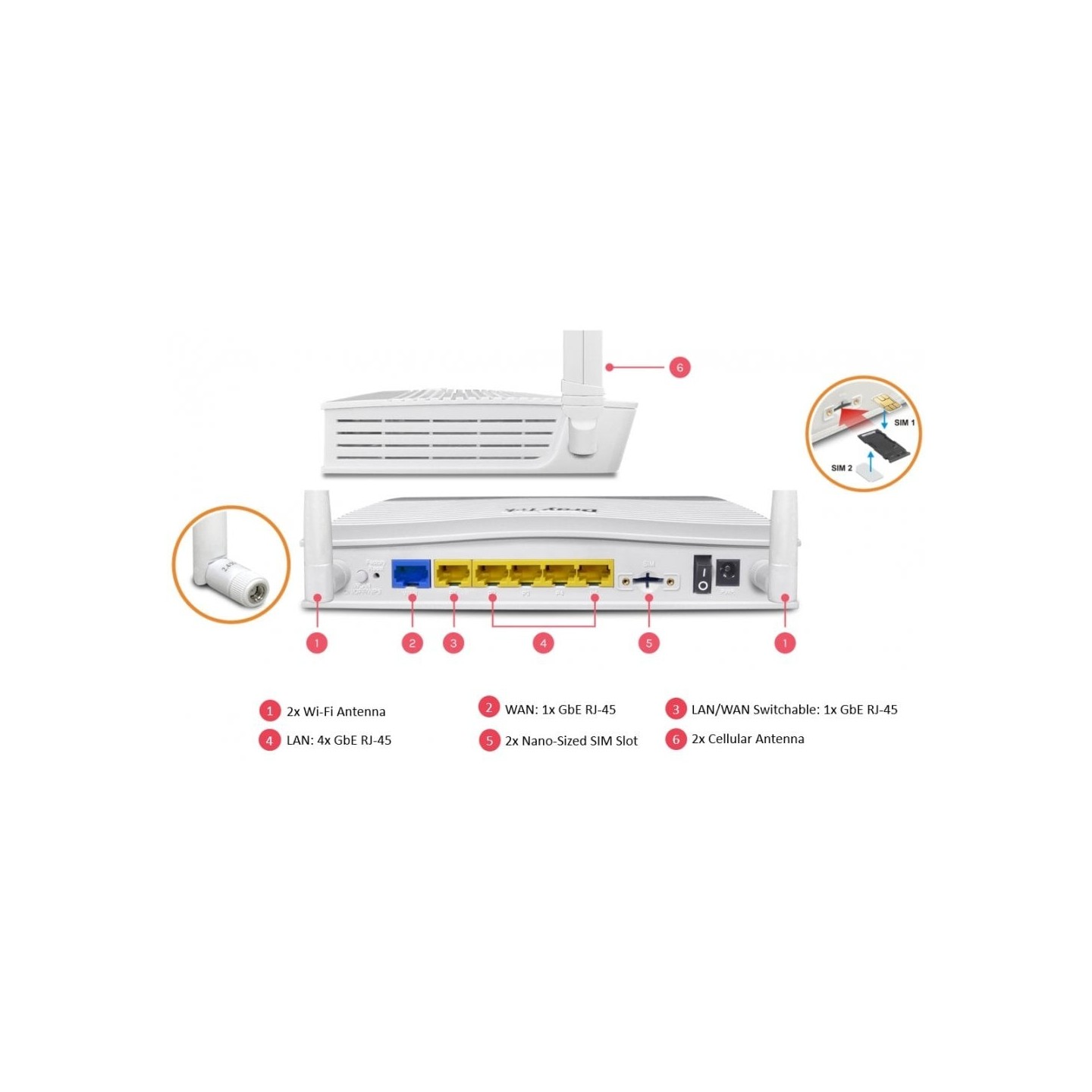 • 1x Gigabit Ethernet WAN (RJ45) / LAN switchable