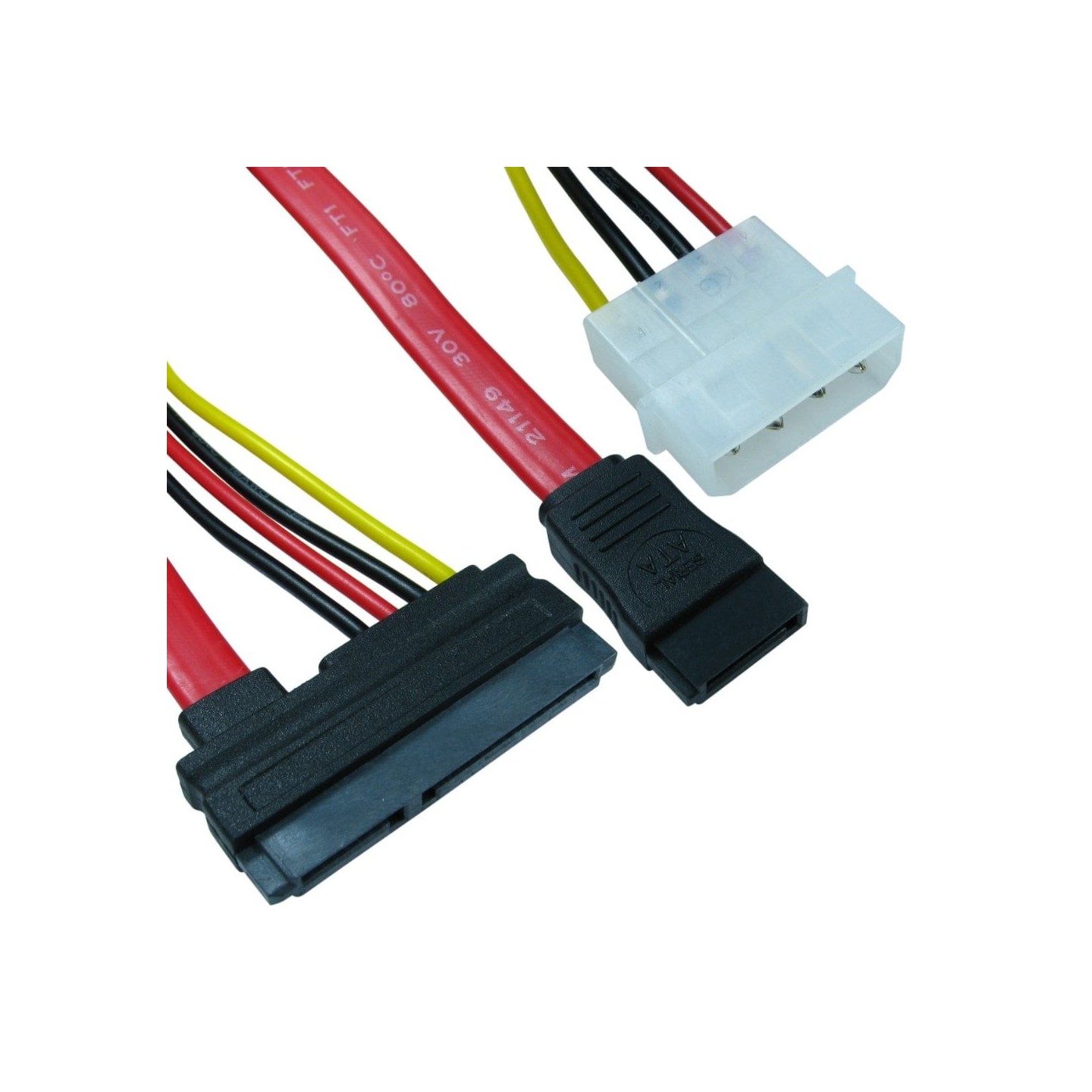 Serial ATA combo power & data cable, male 4 pin molex to 15 pin SATA power female connector, female 7 pin data cable. Ideal for quick connection of SATA HDD as opposed to fiddling with two connectors.