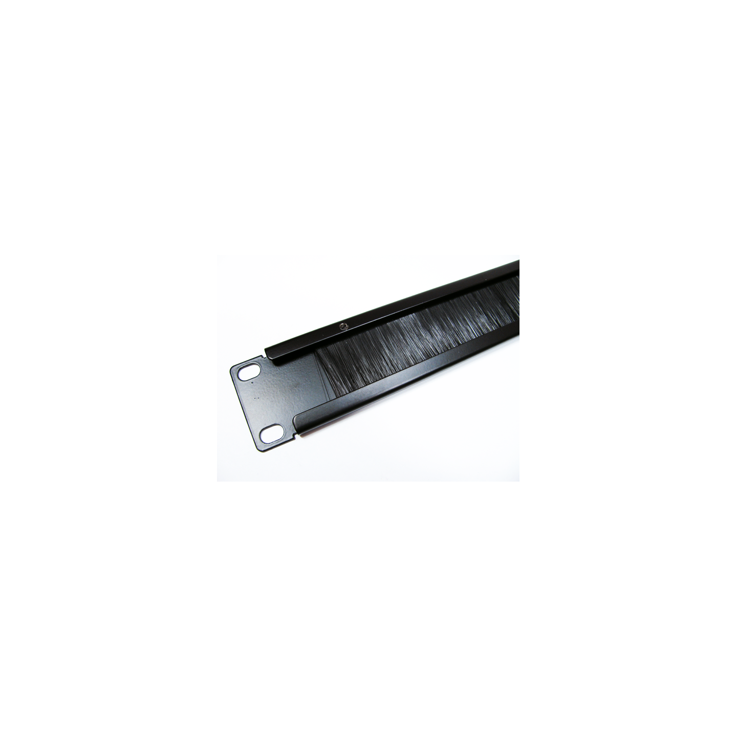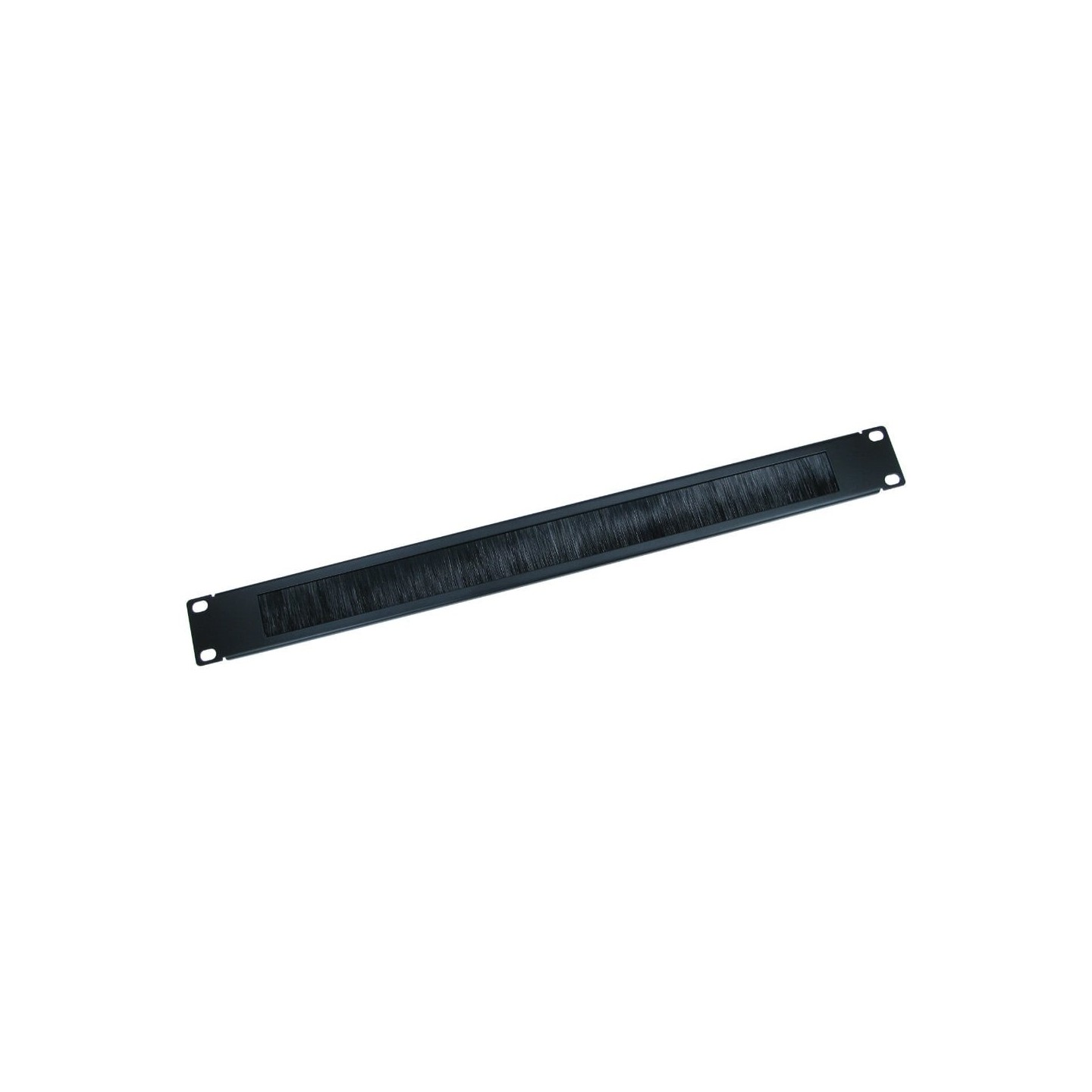 Rack mount brush type cable management panel suitable for use where patch cables are used to connect to the front of network switches to allow cabling to be passed through and to keep dust out. Made out of a solid metal frame with integrated brushes in the centre and finished in high quality fine textured black.Does not come with mounting screws.