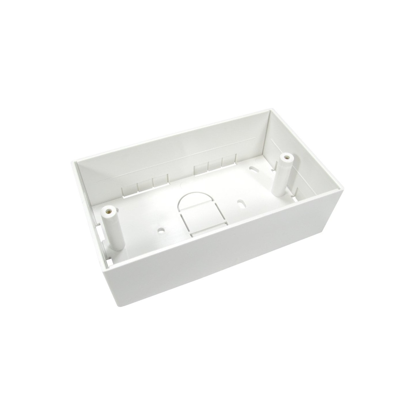 The UT-734D is a surface mounting double back box for 145mm wide faceplates. Has multi in and out points allowing easy access, 45mm deep to allow enough cable bend for most applications.