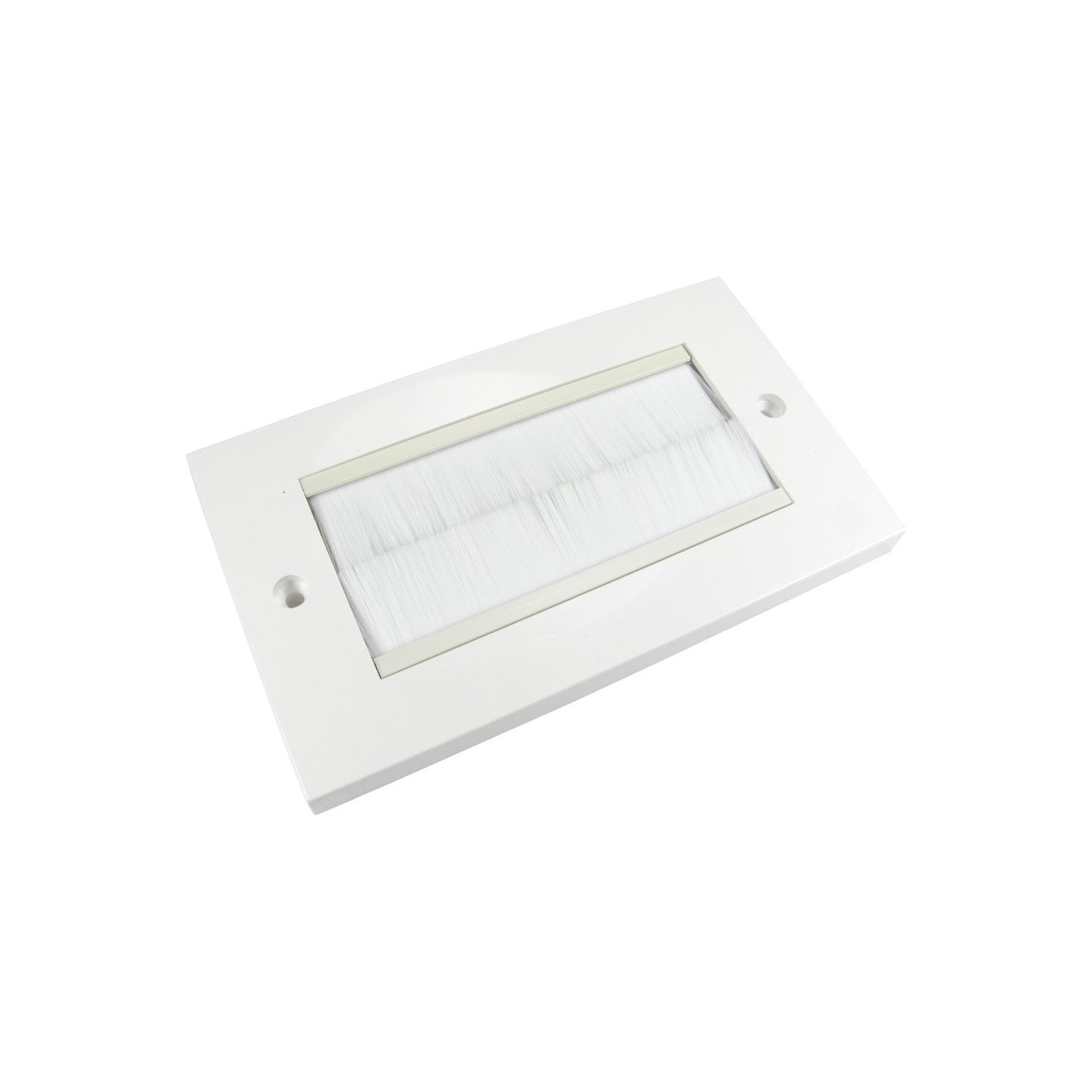 The UT-744WH is a white cable entry/exit faceplate with a white brush to keep the plate tidy where the cables exit the wall or trunking. It is designed to attach to a standard dual gang back box.
