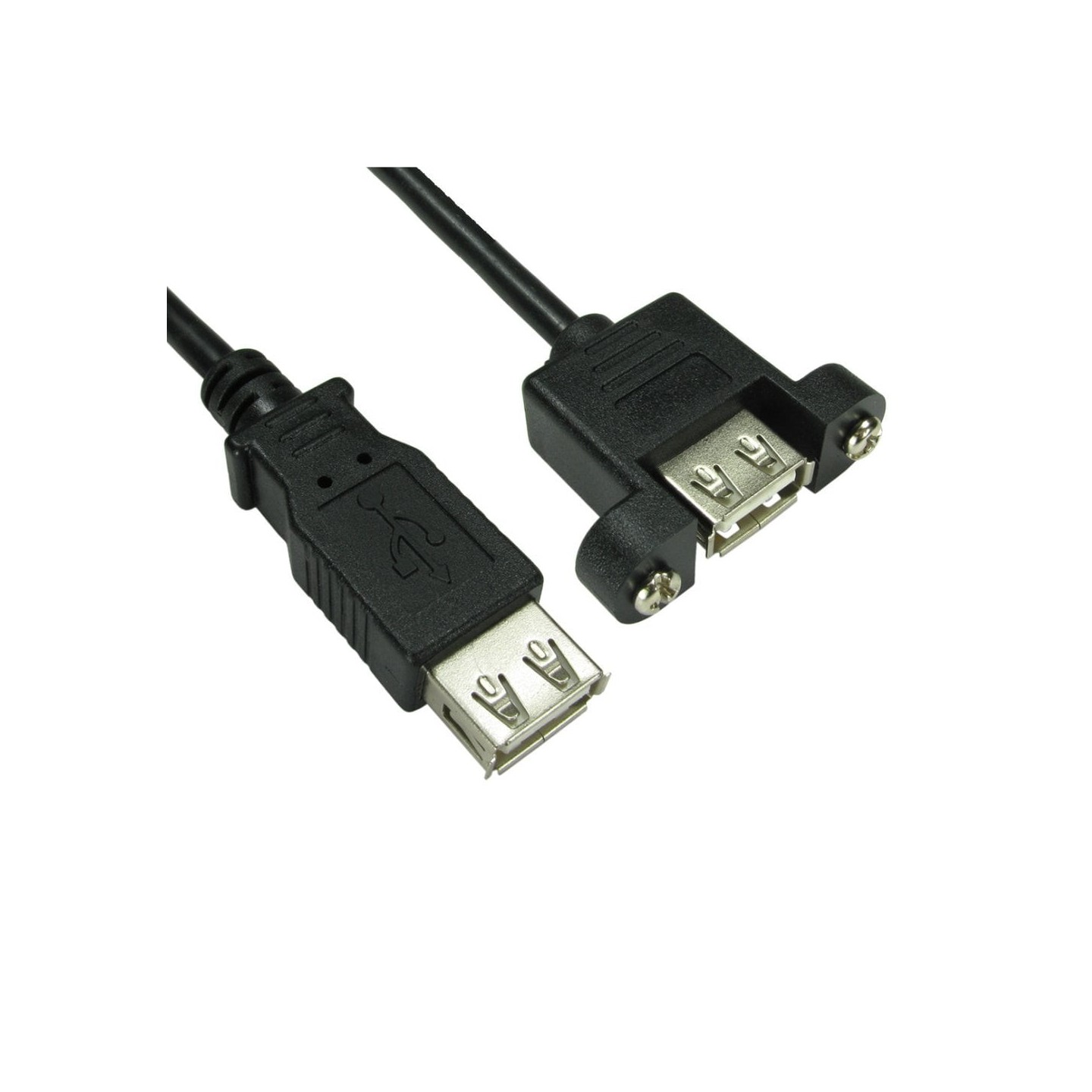 0.18m USB 2.0 Type A (F) to Type A (F) Panel Mount Cable - Black