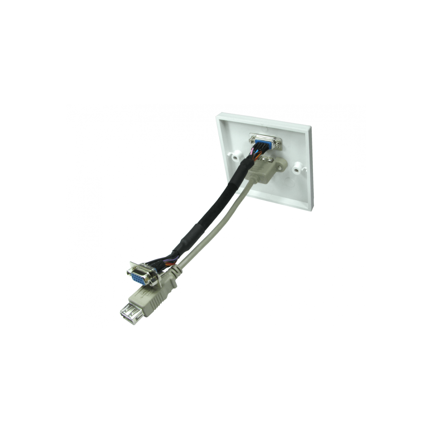 The ZZ-FP04USB-STUB is a single faceplate with VGA and USB type A Stub and VGA Stub cable. This standard faceplate comes with female connectors on the front and male connectors on the other end of cable, comes in lengths of stub, 5, 7, 10, 15 and 20m.Back boxes can also be added if needed.Contact sales for a quote !We can also make customised faceplates.