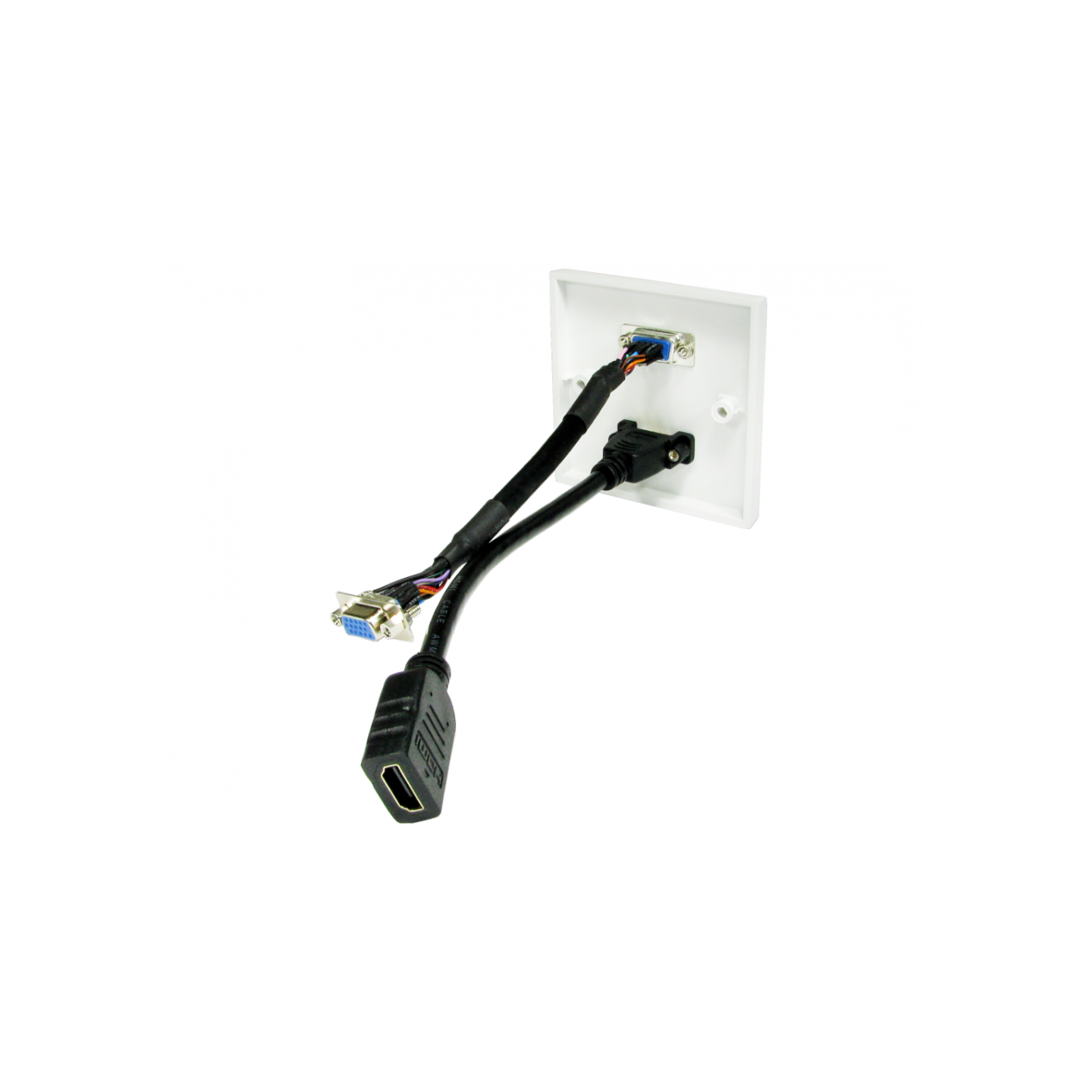 The ZZ-HD1-STUB is a single faceplate with HDMI and VGA Stubs only. This standard faceplate comes with female connectors on the front and female connectors on the other end of cable, can come in lengths of stub, 3, 5, 7, 10, 15 and 20m.RCA and 3.5mm stereo stubs/cables can be added if requested.Back boxes can also be added if needed.Contact sales for a quote !We can also make customised faceplates.