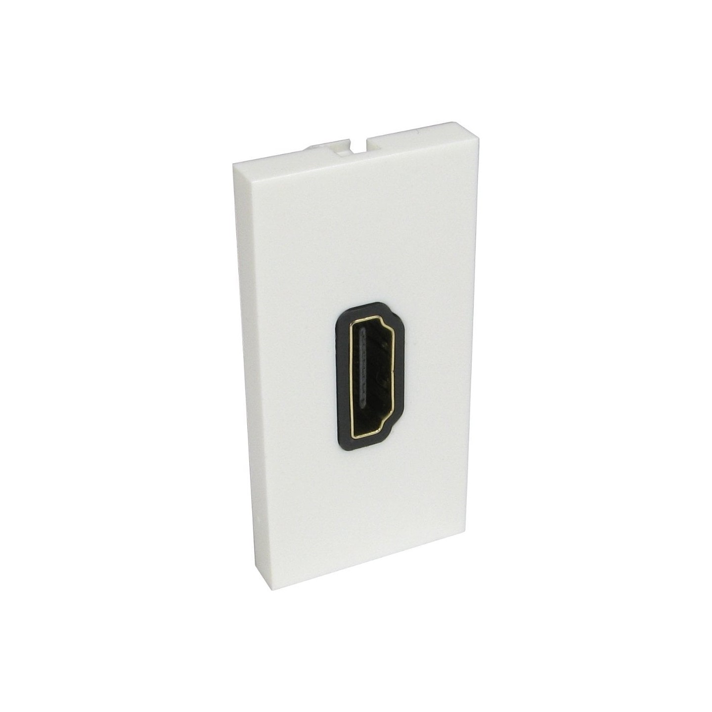 The HDMI AV module has a precut slot to fit the HDMI stub perfectly, can be used with faceplates designed to fit 50mm x 25mm clip in modules. We can supply single and dual faceplates along with back boxes and cables.