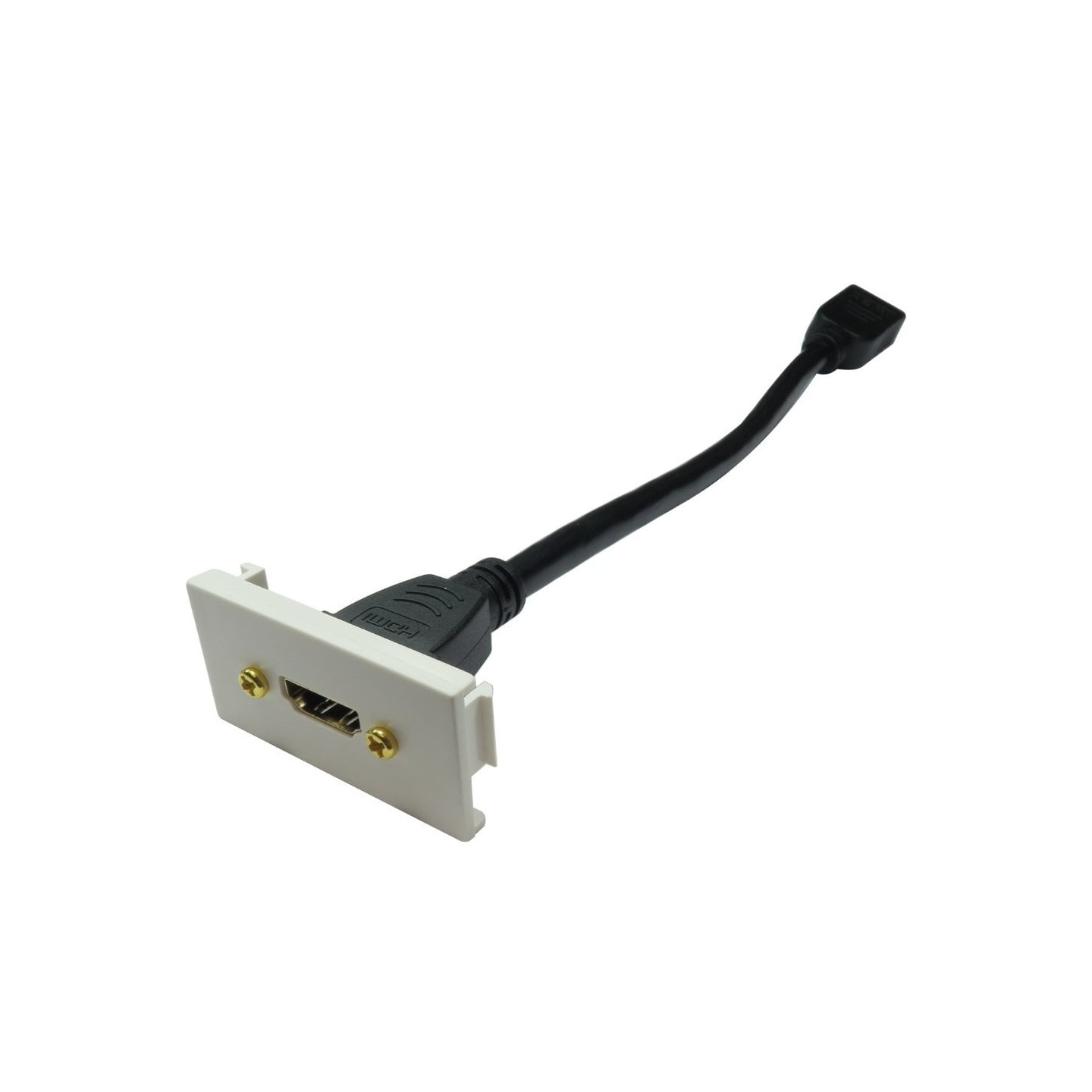 The HDMI AV module has a precut slot to fit the HDMI stub perfectly, can be used with faceplates designed for 50mm x 25mm clip in modules. The HDMI stub is capable of carrying the bandwidth for 4k@60Hz.We can supply single and dual faceplates along with back boxes and cables.