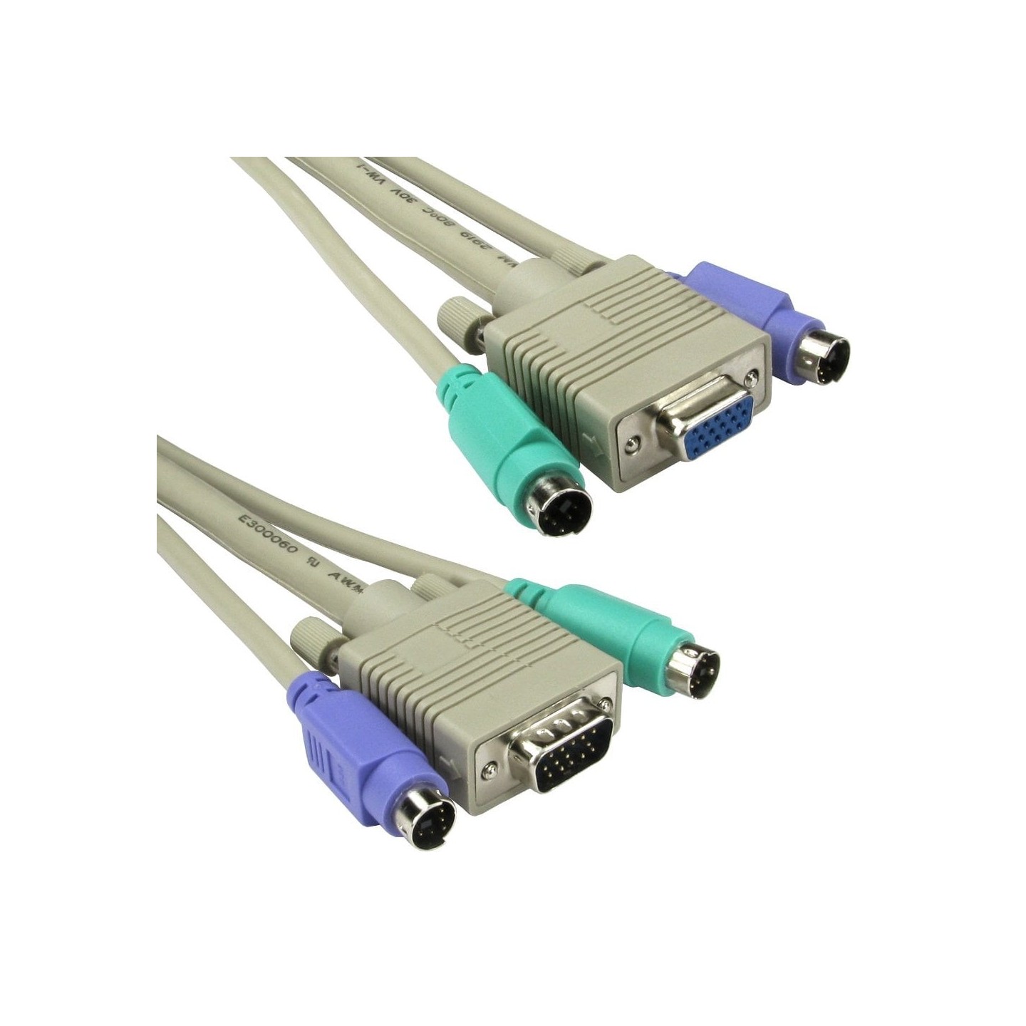 KVM cable with male keyboard, male PS/2 and male SVGA connectors one end with male keyboard, male PS/2 and female SVGA connectors on the other. The KVM cable is compatible with the following KVM switches...KVM-507KVM-510KVM-510DKVM-512KVM-512DKVM-522
