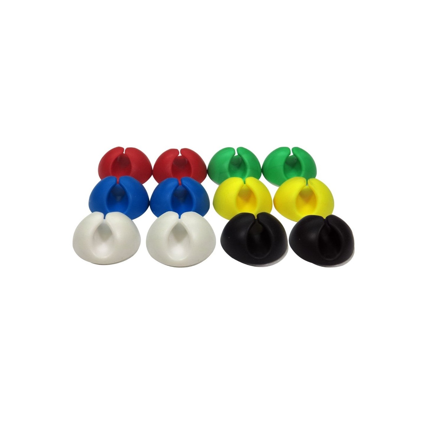 The desk tidy cable holders have one port/channels to organise cables. They have a self-adhesive bottom that will stick firmly to most surfaces but at the same time is easy to remove. Each channel will hold either a large cable or a few thin cables.This is a mixed pack of 12 colours. Two of each.