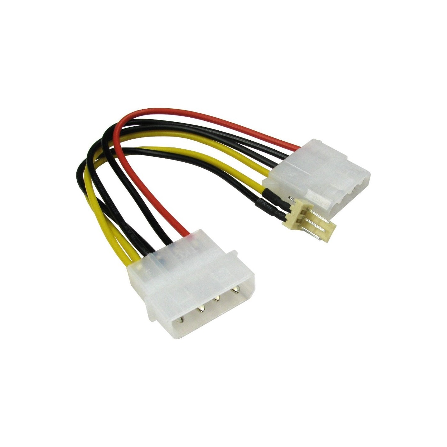 Molex extension with 3 pin fan power for adding fan power while keeping the 4 pin molex power connector.