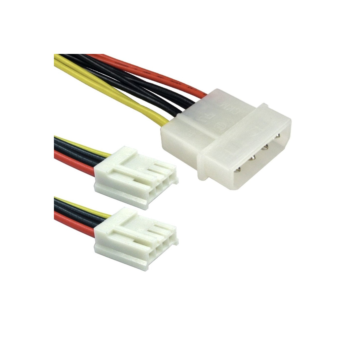 Power splitter cable 5.25 inch 4 pin molex to twin 3.5 inch 4 pin floppy drive connector (mini-spox). Adds two floppy drive connectors by using a 4 pin molex.