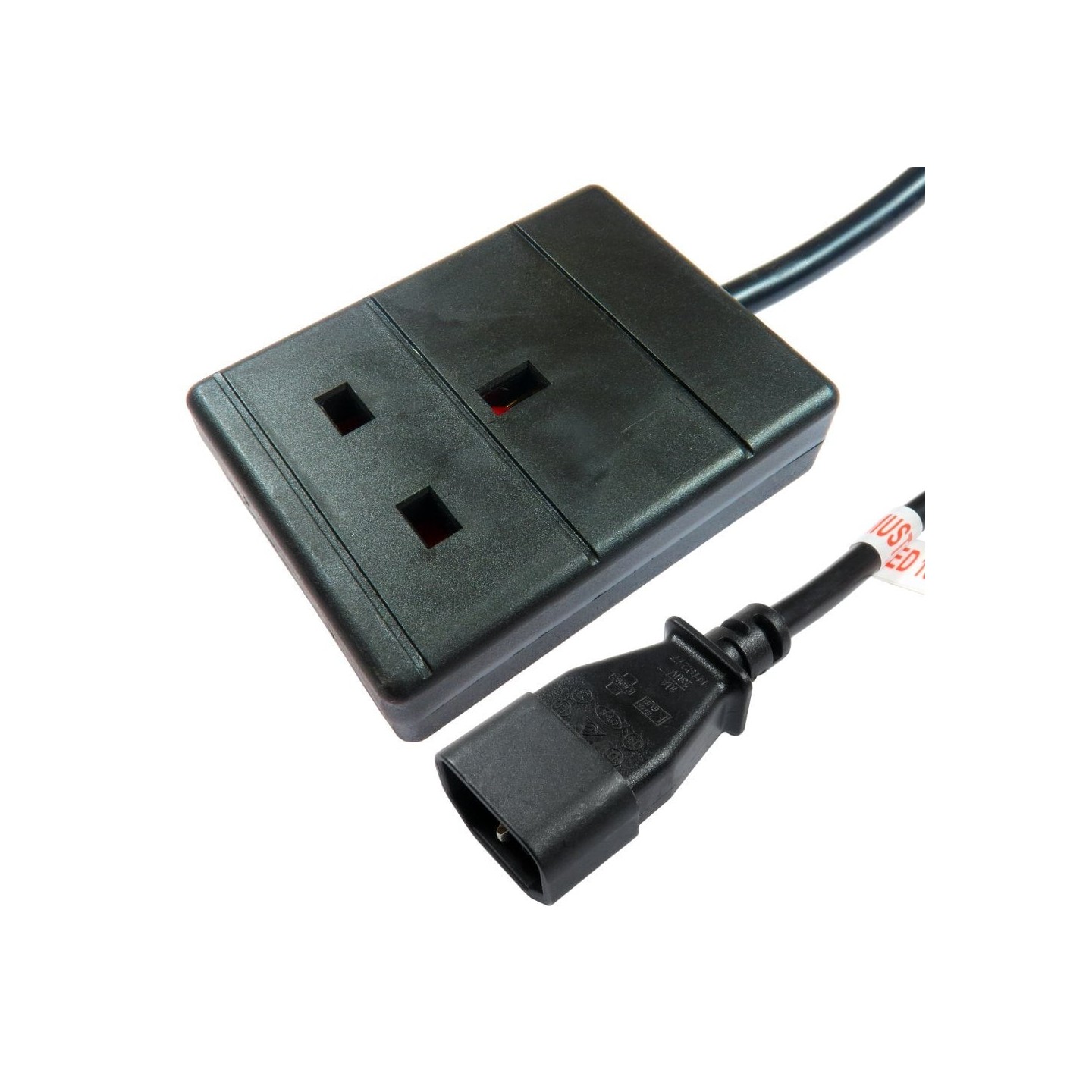 The RB-001-1G is a 1 way mains extension lead. Featuring an IEC C14 (kettle style) connection to 1 UK plug socket. This product is ideal for converting an IEC C13 connection into a UK socket.It is mostly likely to be used to connect a standard UK mains plug into a UPS.