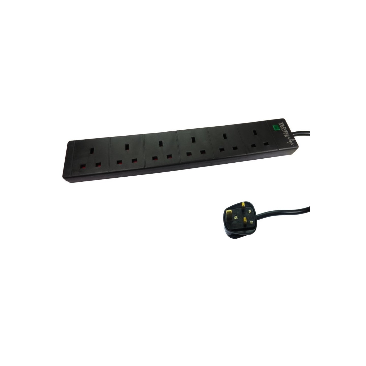 • 2m 6 Port Surge Protected UK Power Extension - Black