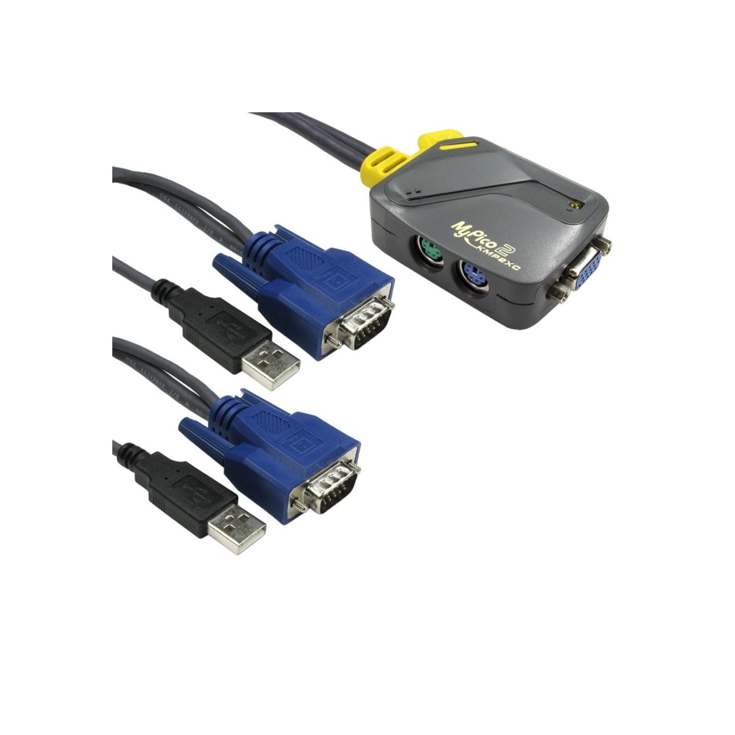 The Micro KVM Switches come complete with attached cables allowing users to access two computers using 1x Monitor, 1x PS/2 Keyboard & 1x PS/2 Mouse.The KVM-664 Model allows 2x PC's, MAC's or combination of the two (USB connection) to 1x Monitor, Keyboard and Mouse. These Micro KVM Switches were designed on the principal of 'size matters'. This is one of the smallest KVM Switches available. Two cables (1x 1.8Mtr/6ft and 1x 0.6Mtr/2ft) are supplied moulded to the switch with a uniquely styled strain relief that can be used to attach the Micro KVM Switch to a desktop or wall to protect the Micro KVM from damage or dirt.No interface card or software is needed, Installation is as easy as connecting cables from the CPU Switch to your computers.Operation is as simple as entering hot-key commands from a keyboard.The Micro KVM Switch is independent of computer operating systems.