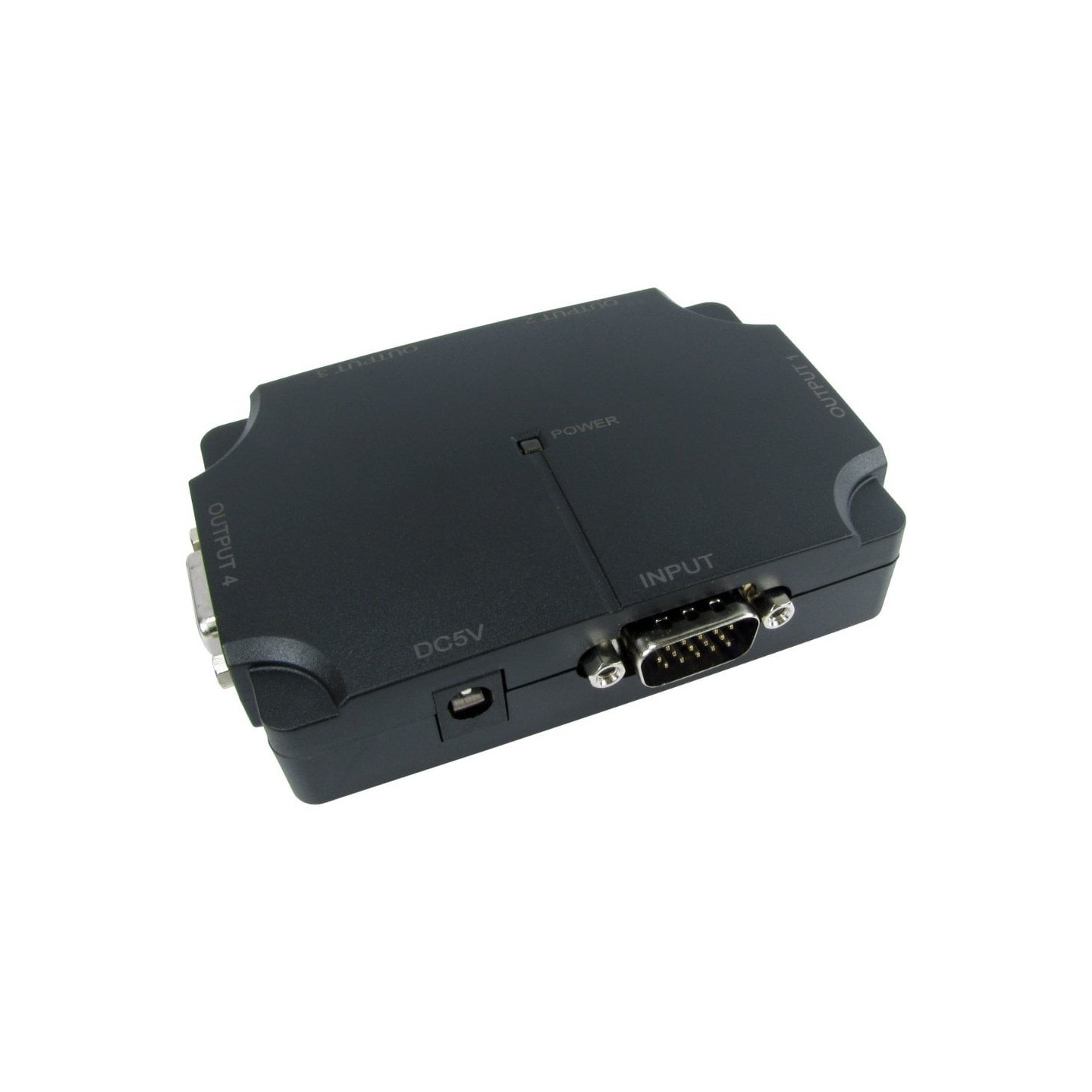 The SVGA Splitter sends a high resolution VGA signal, up to 1920 x 1080 to four displays.This splitter has a high bandwidth of 350Mhz for a superior resolution. The unit is powered by a USB cable so it does not take up valuable plug sockets. There is no software required so just simply plug them in and the video signal is split. They come in a compact size so it does not take up too much space on your desktop or are easily hidden behind monitors.