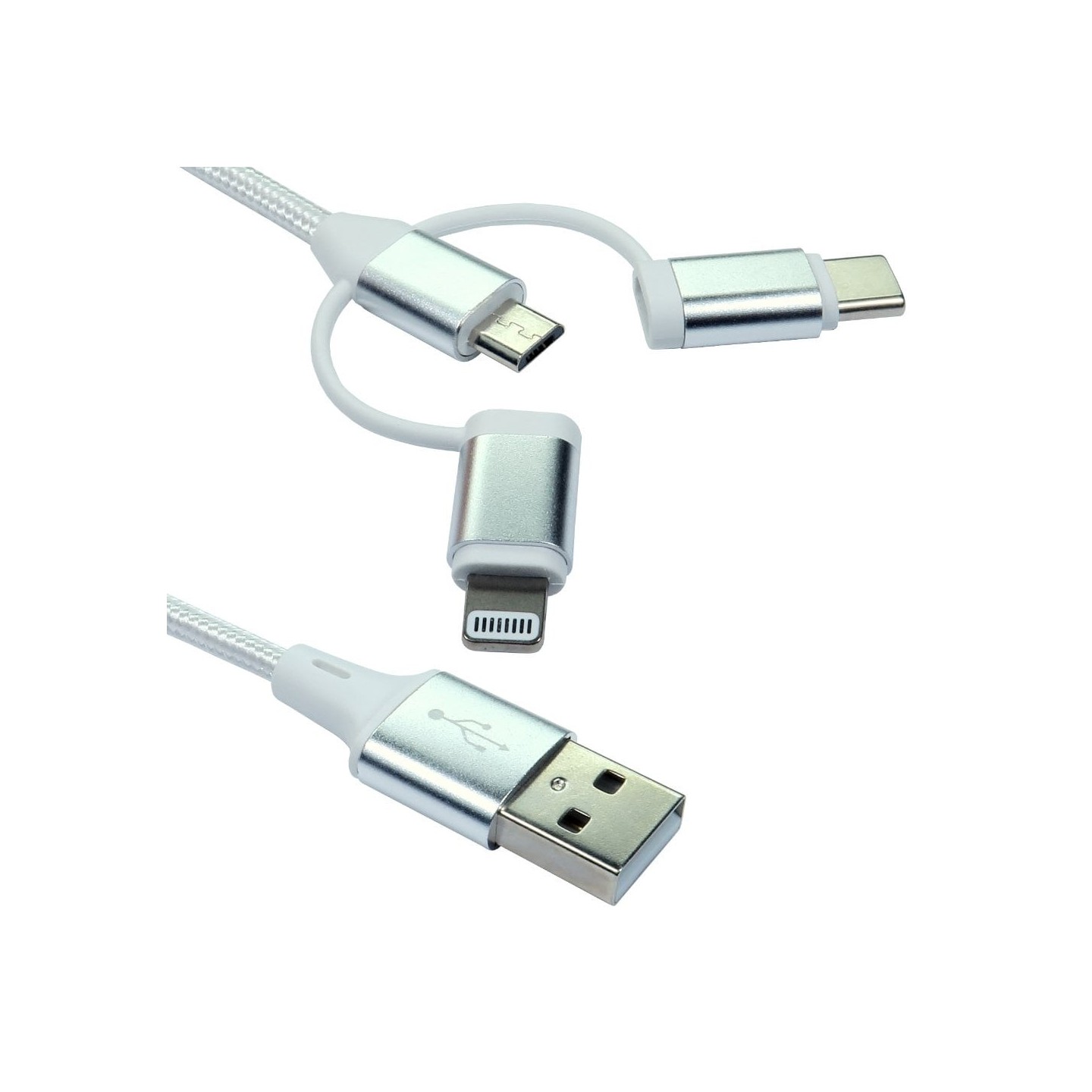 • USB Type A to- USB Type C- USB Micro B- Lightning