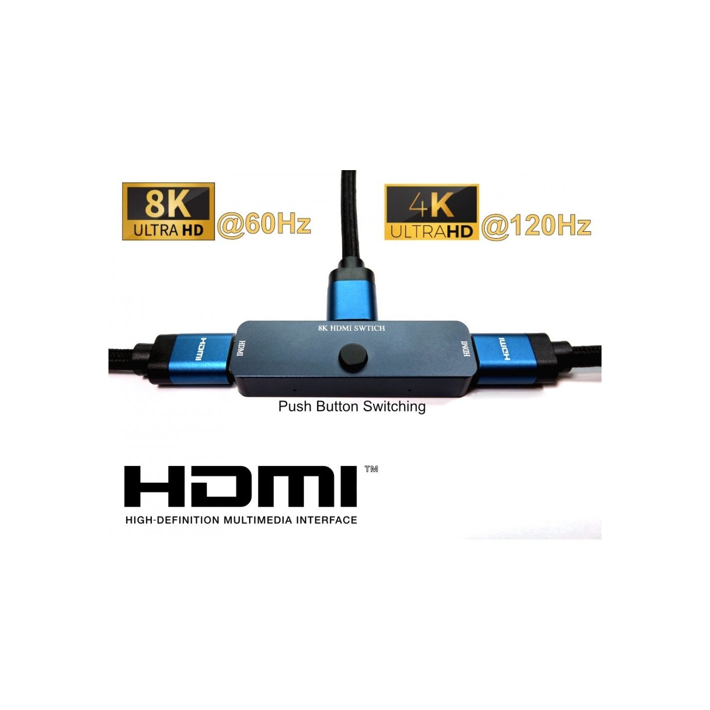 The bidirectional switch allows you to connect two 8K@60Hz displays to one 8K@60Hz source (such as a computer) or two sources to one display.The maximum length of cable should not exceed 5mtrs in and 5mtrs out. For best performance, keep the HDMI cables as short as possible.