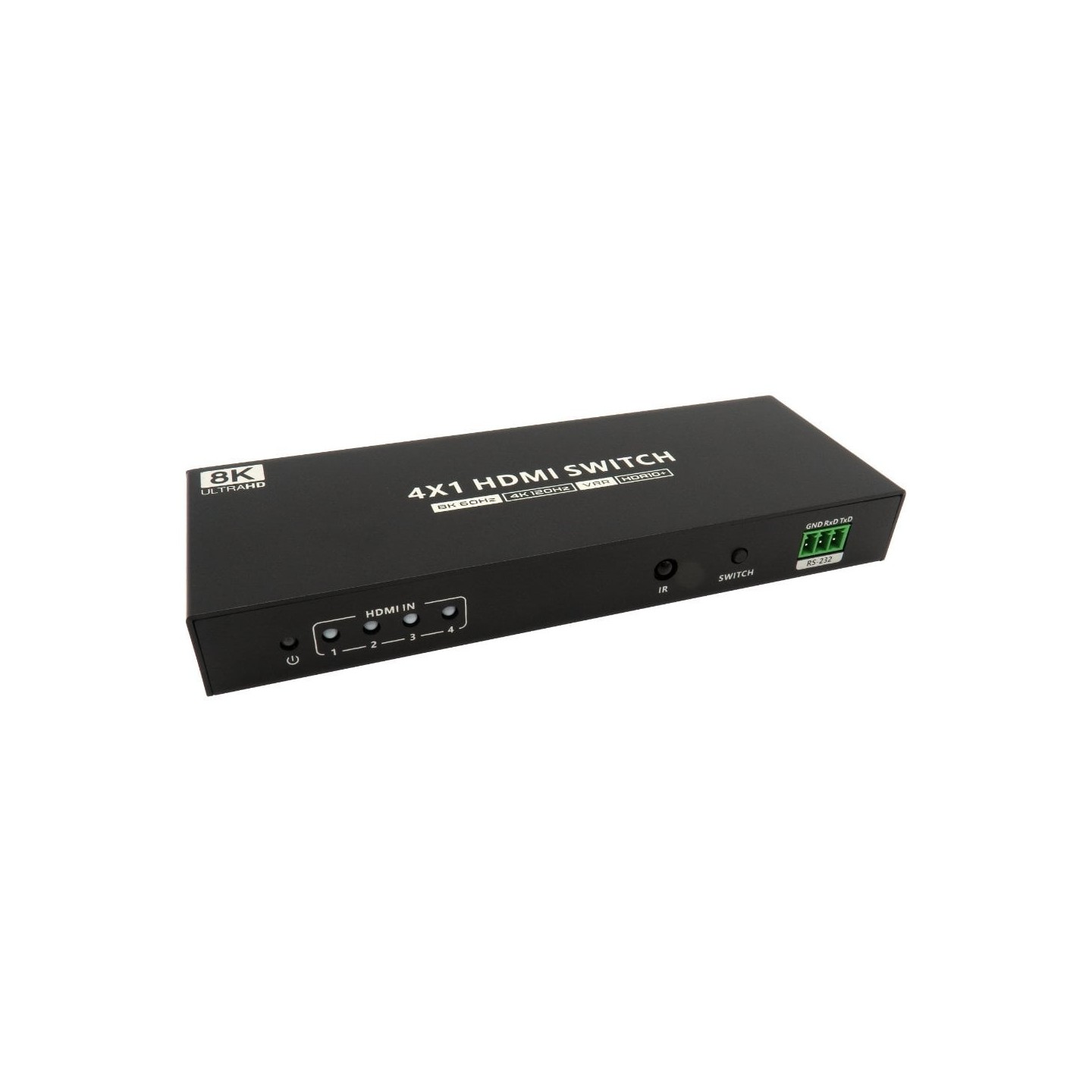 The HD8K-SWB4 HDMI™ v2.1 switch supports 4 HDMI™ signal inputs and 1 HDMI™ signal output. The highest supported resolution is 8K @ 60Hz and is backward compatible. A variety of control methods (IR remote control and RS-232 switch) can easily switch the content of the 4 HDMI™ signal sources to the display. HDMI™ Switches are widely used in security monitoring, media entertainment and broadcasting.
