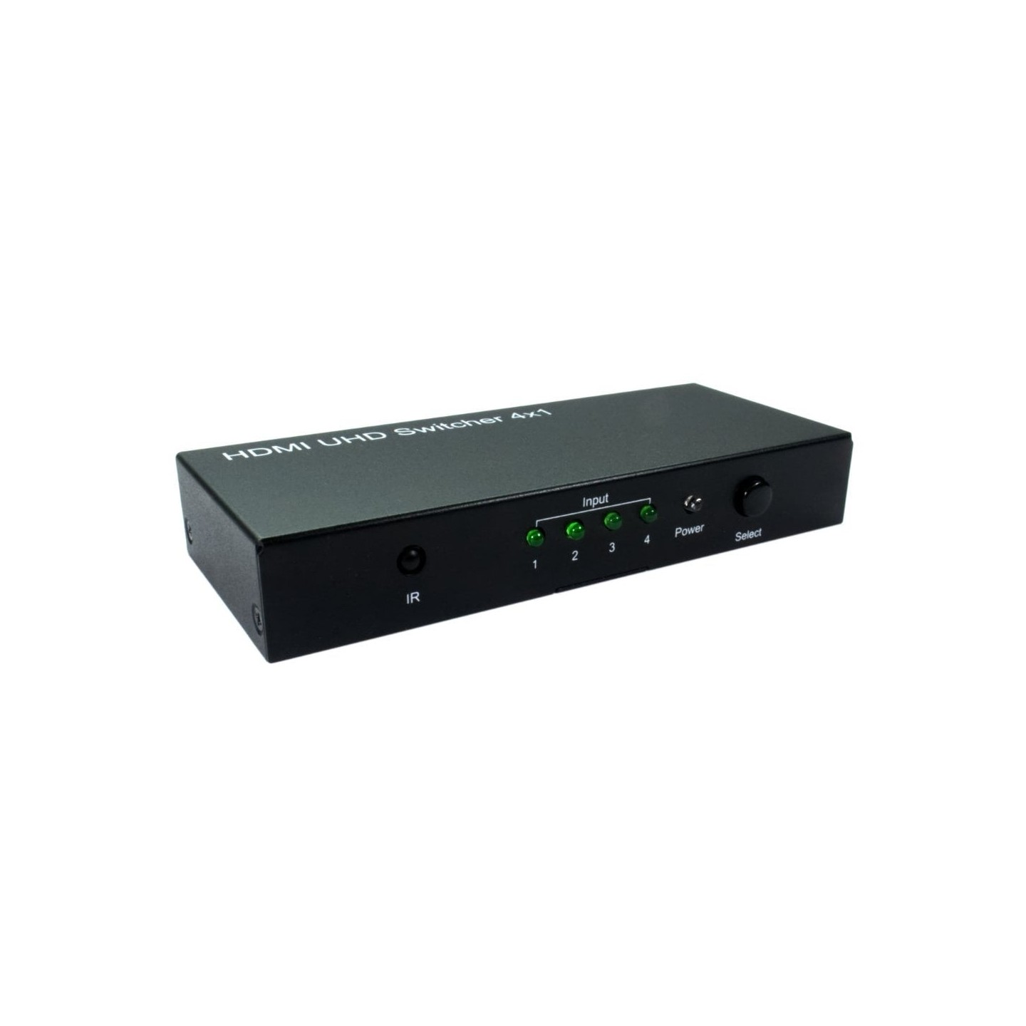 The HD-SW104A is a high-performance and small-sized HDMI UHD Switch. It allows four HDMI devices to be connected to one HD Monitor, Projector or TV. With a touch button design, switching is easier and convenient.The intelligent function will switch between HDMI sources as and when they are plugged in, removed or turned off. It is supplied with a remote control for ease of switching.