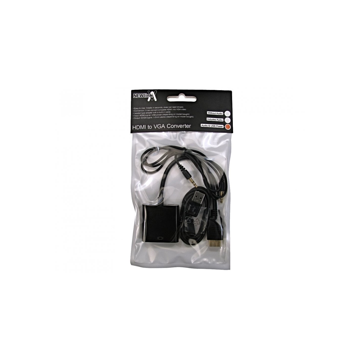 The NLHDMI-HSV converts the HDMI digital signal into a VGA analogue signal for use with VGA displays, it also has a 3.5mm stereo socket to output sound to devices such as speakers. Comes with USB cable should extra power be needed.This product is supplied in NEWlink retail packaging.