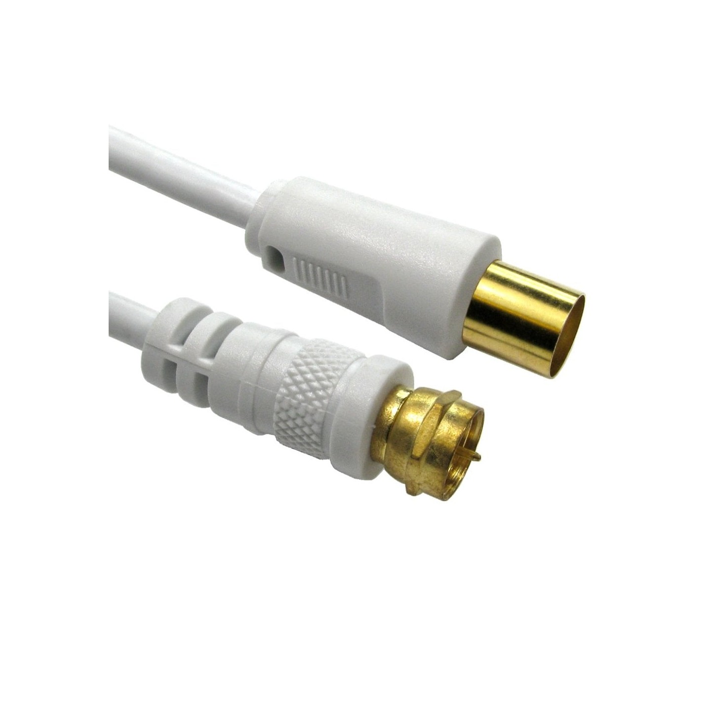 The TV to F connector cable is typically used for connecting a TV aerial to a satellite box or vice versa.