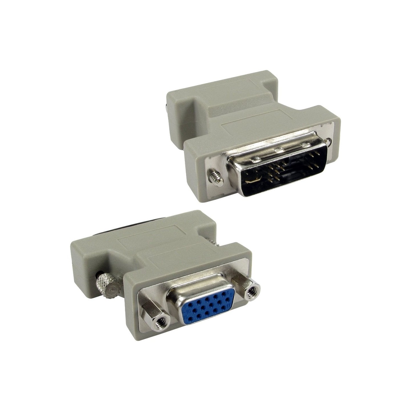 DVI-A male to VGA female adapter for connecting a VGA monitor to a DVI-A or DVI-I source. Digital displays or LCD's will only work if they use analog signal as well. The analogue pins are connected from the DVI source to the corresponding VGA pins. These adapters do not convert digital signals into VGA.