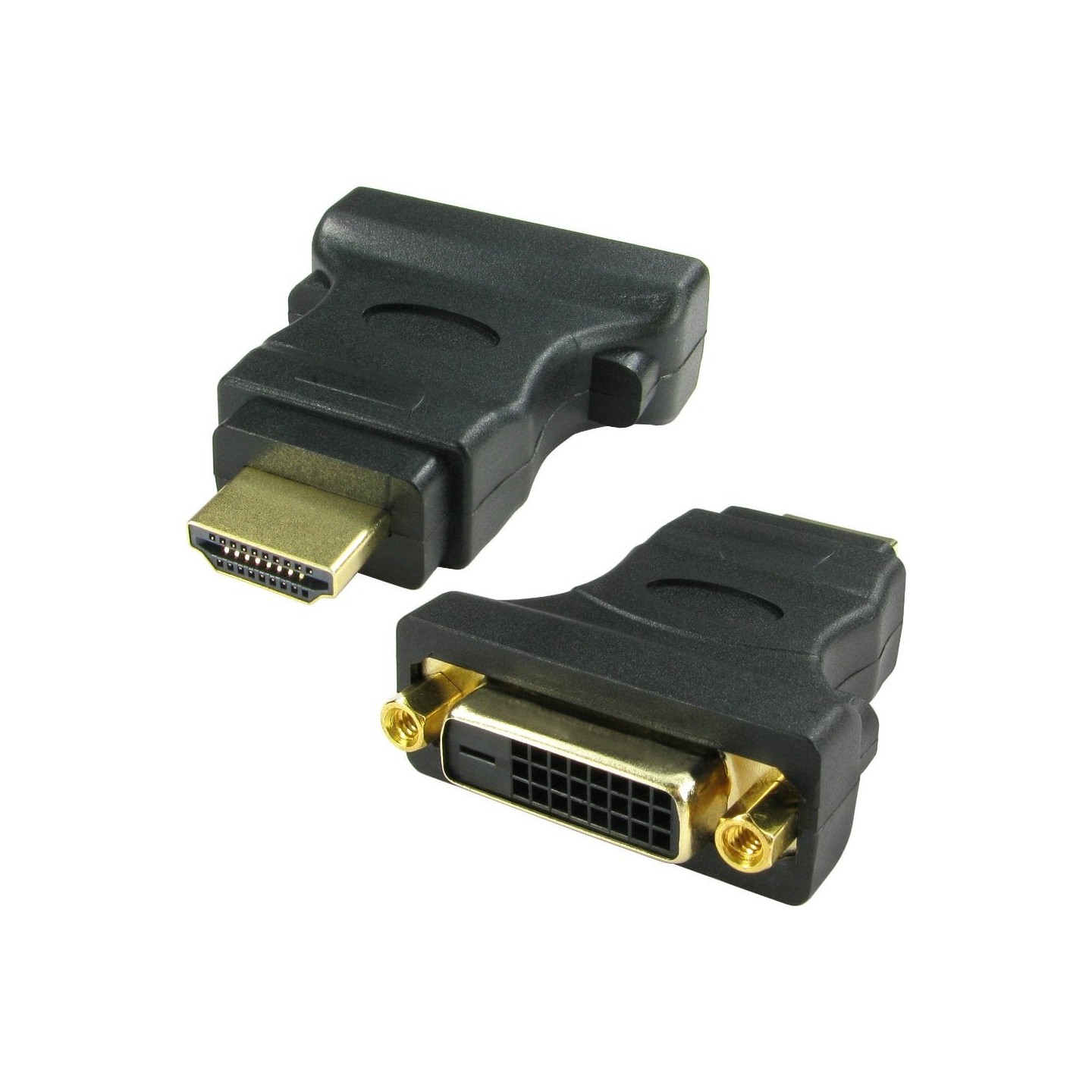 DVI-D 25 pin female to HDMI 19 pin male adapter for converting HDMI device signals into DVI-D, audio is not carried via the DVI-D connector.