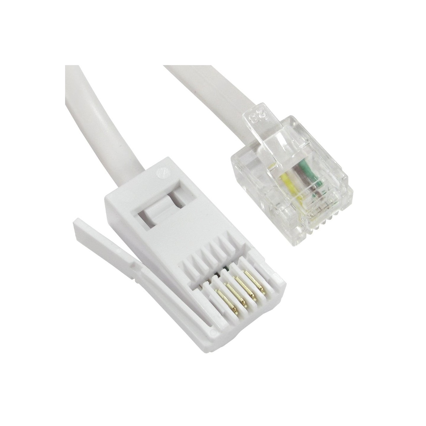RJ11 Male to BT Male standard modem cable commonly called a rollover due to the wiring rolled over.