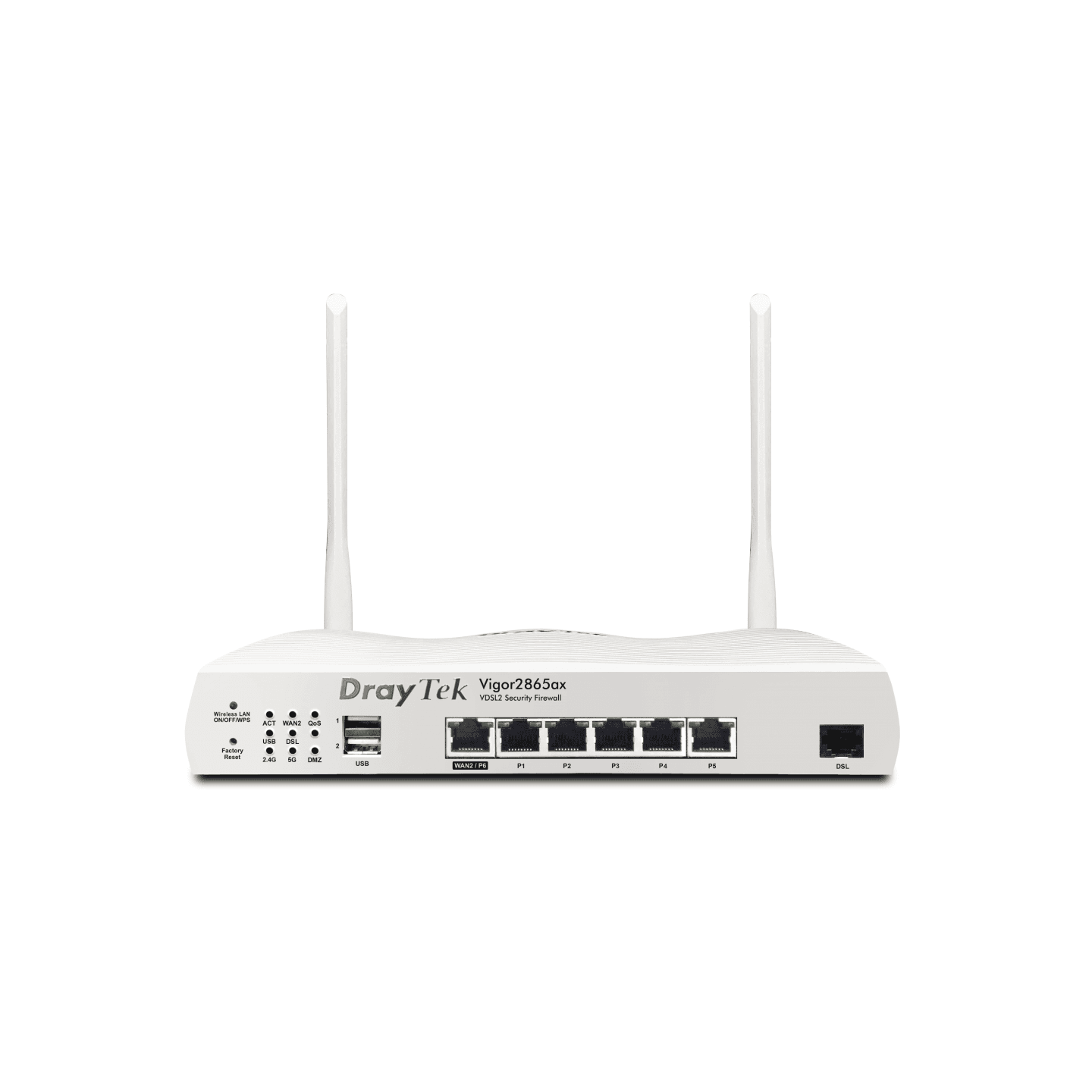 DrayTek's Vigor 2865 series Multi-WAN Firewall VPN routers are ideal for Superfast VDSL Broadband and Ethernet-based FTTP Fibre Broadband. With Gigabit throughput, Quality of Service, VPN client/server, comprehensive Firewall and Content Filtering controls.Options for Wi-Fi 6 on 'ax' models, or Wi-Fi 5 'ac' models provide fast & efficient wireless connectivity, while the integrated 4G+ LTE modem on 'Lac' models takes full advantage of mobile broadband. The Vigor 2865 series provides a reliable, flexible, and secure networking solution, that's ideal for Home Offices, Small Business and Satellite Offices.