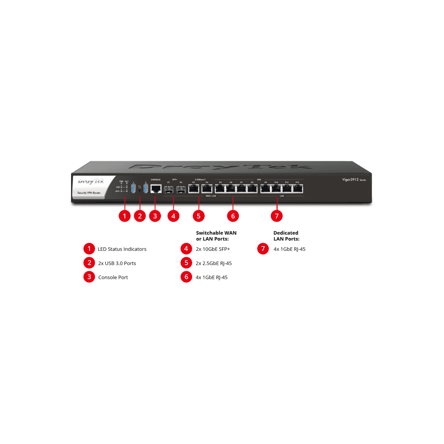 The DrayTek Vigor 3912 series is a premium next generation multi-WAN router making it ideal for your most demanding and complex networks. This VPN concentration is the evolution of our powerful 3910 model with even faster hardware to solve your large network challenges.
