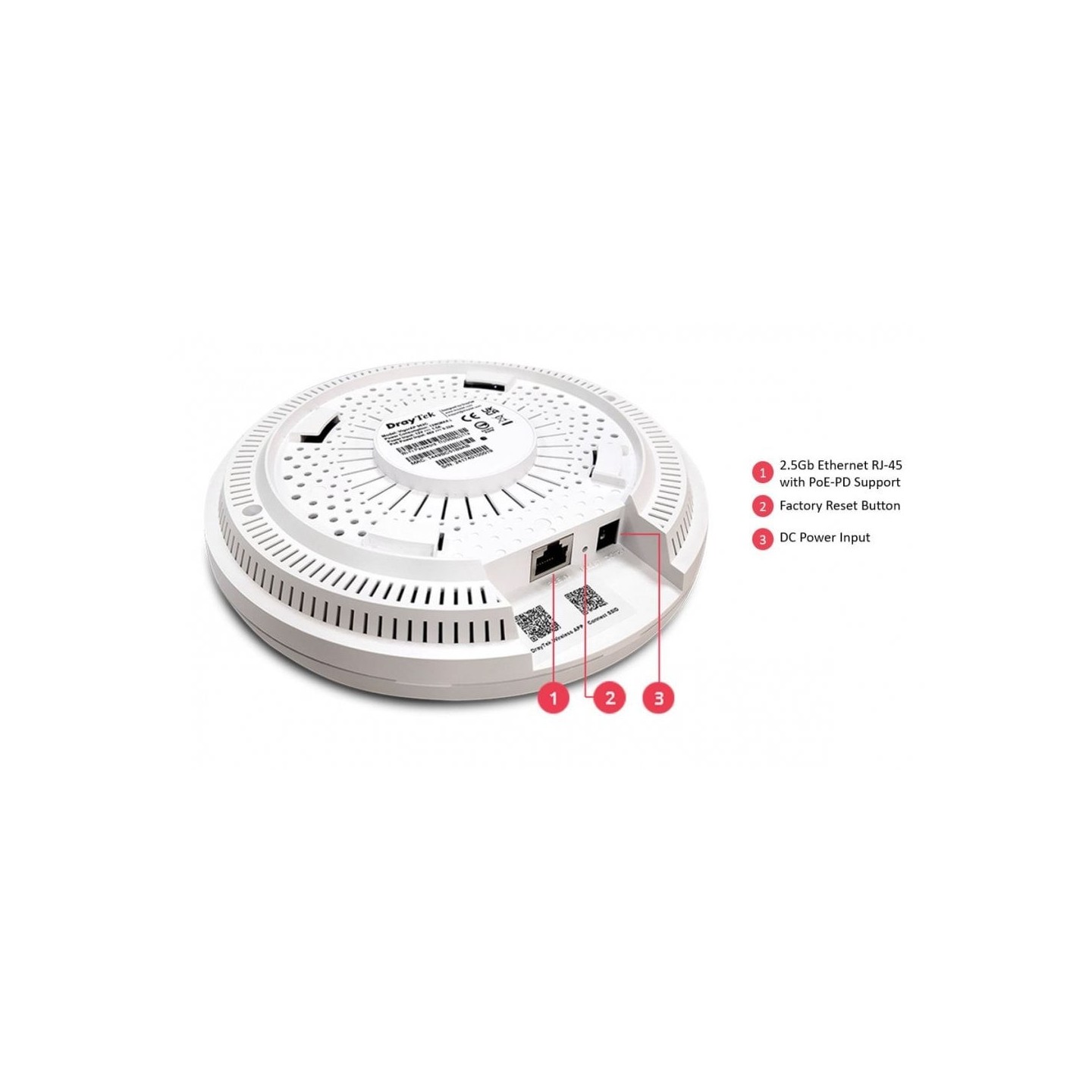 The VigorAP 962C is a high-performance wireless access point designed for business and SOHO environments. This ceiling or wall-mounted mesh access point delivers dual-band wireless performance of up to 3Gbps (AX 3000), providing fast and reliable Wi-Fi connectivity for demanding network.Equipped with 2.5Gb Ethernet wired connectivity, the VigorAP 962C ensures seamless integration with your existing network infrastructure. This allows for high-speed data transfer and optimal performance for all your connected devices.Ideal for small to medium-sized businesses and home offices, the VigorAP 962C is easy to install and manage, making it a cost-effective solution for improving your wireless network. With its advanced features and high-speed performance, this access point provides a secure and reliable Wi-Fi connection for your business needs.