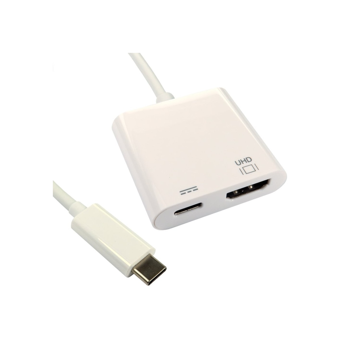 The USB3C-HDMICAB-WPD4K is a USB-C to HDMI Adapter with a USB-C charging port. It is designed to transmit signals from USB-C computers to HDMI monitors/TVs so that you can watch videos or slideshows on the big screen.