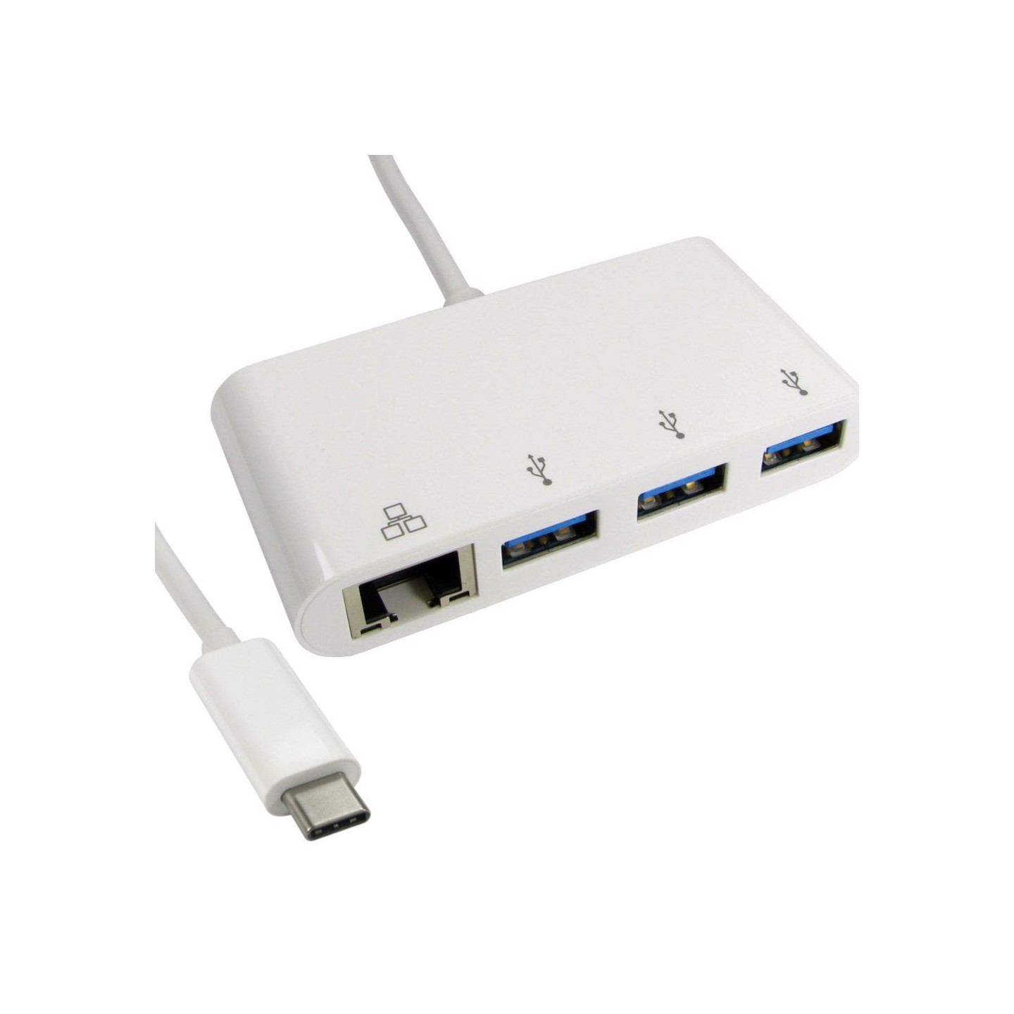 15cm Leaded USB TYPE C (M) TO 3x USB3.0 Hub With Gigabit RJ45
