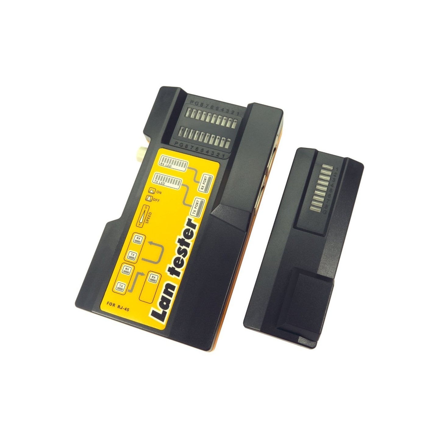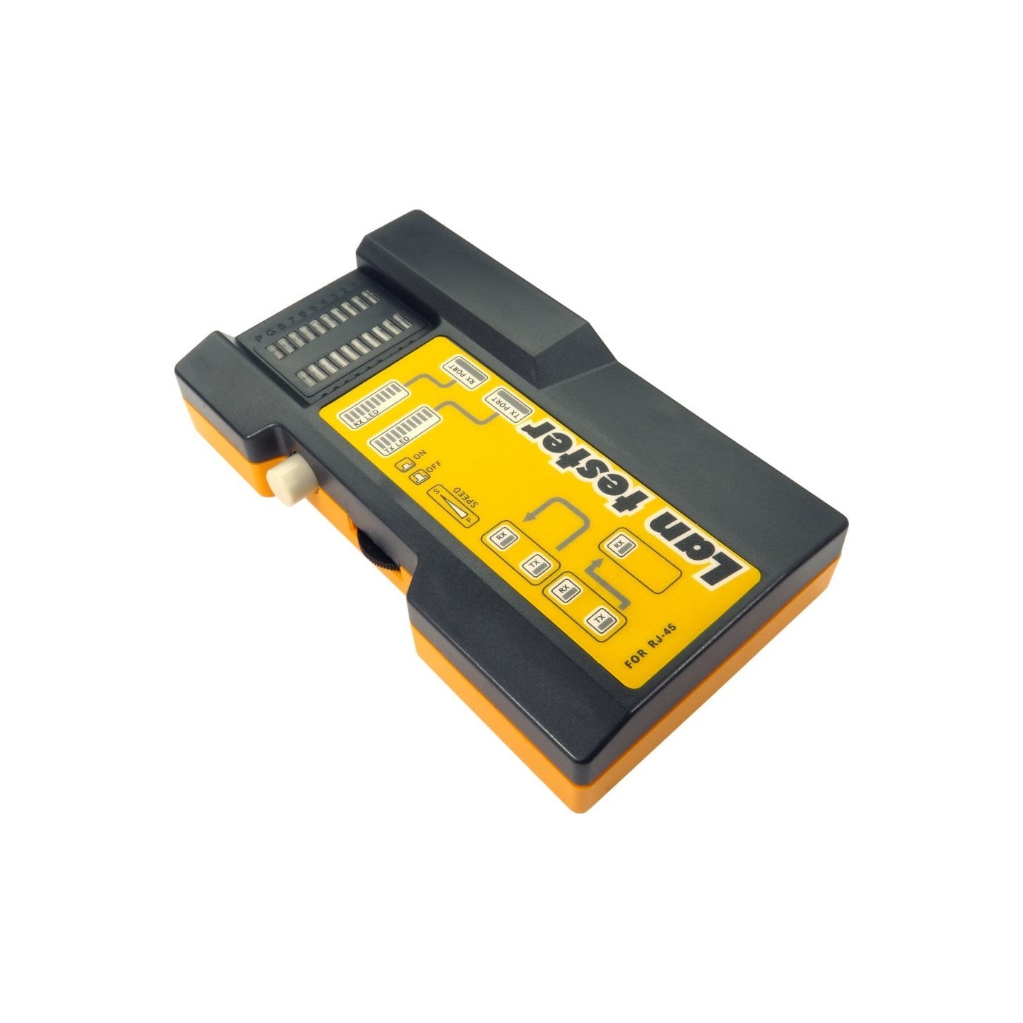 The CT-500 RJ45 Patch cable tester can be used to check wiring pinouts on RJ45 patch cables, or for testing wall ports and patch panel wiring in structured buildings using the included remote unit. As RJ11 and RJ12 fit in an RJ45 socket it will also test these.Please note that this tester is only a continuity tester and does not test a cable or installation for speed, it is not recommend that either of the units are attached to a live network.The speed control alters the speed of the LED display, which will cycle through 1-8 until the unit is switched off.The CT-500 comes with local and remote unit, 9v battery and a carry case.