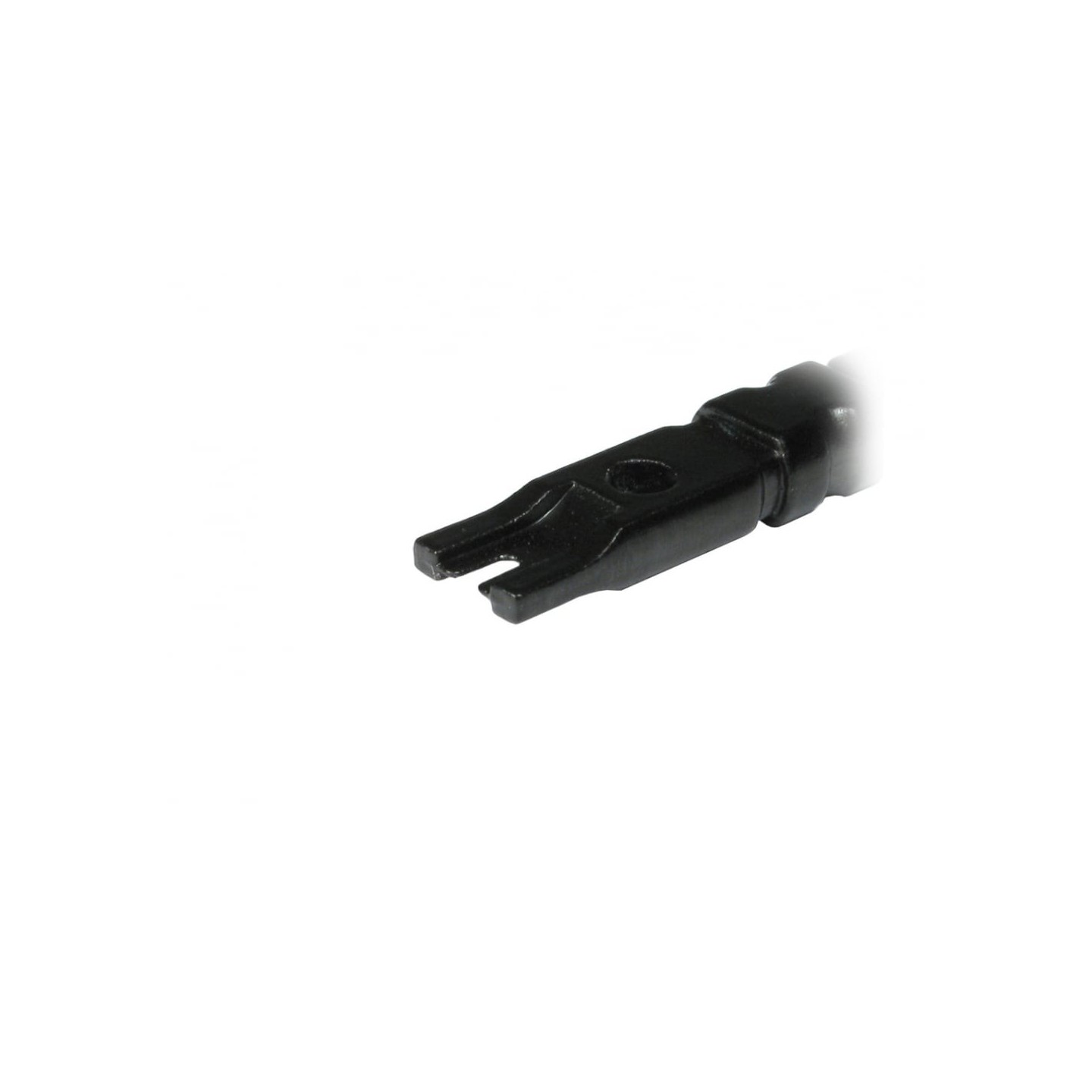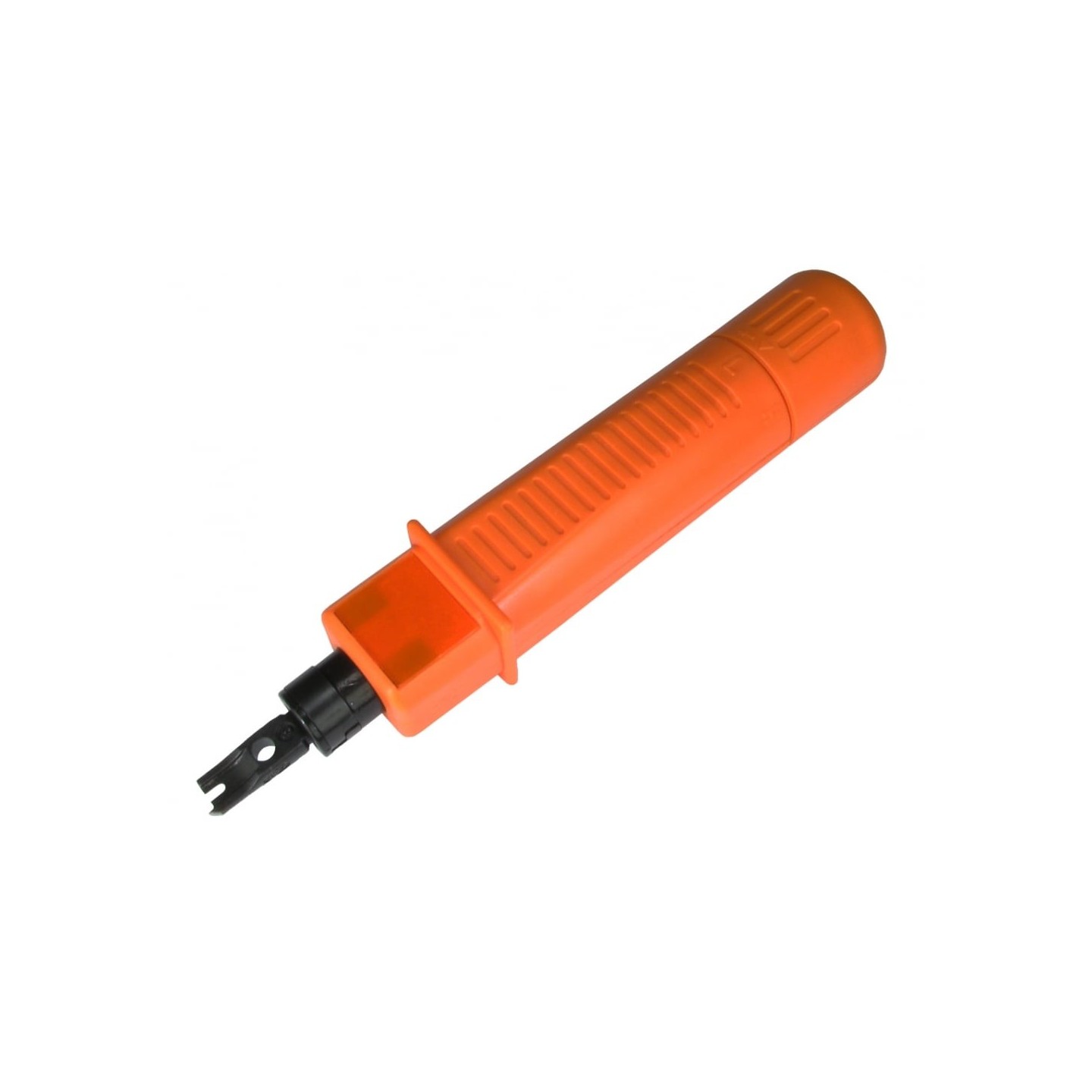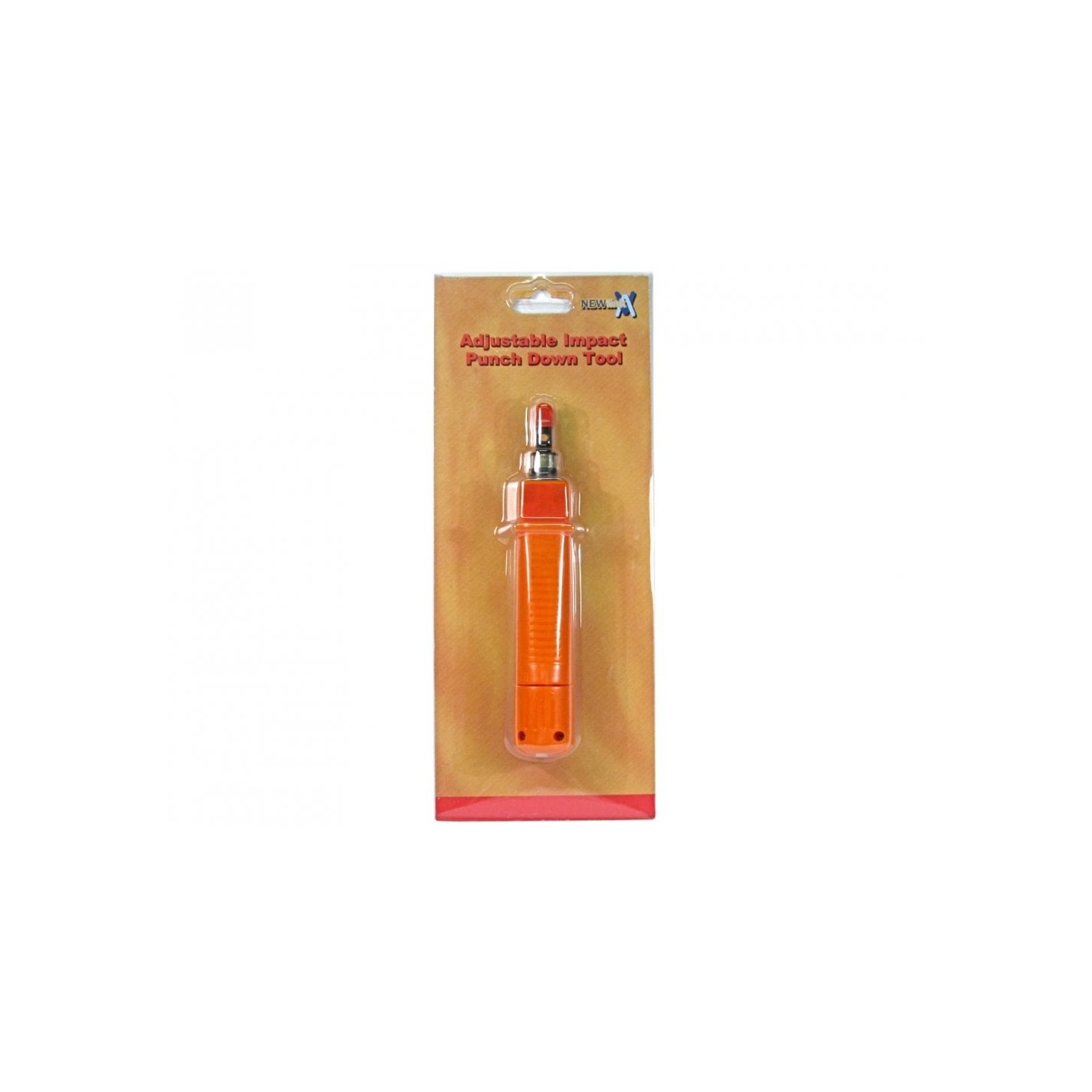 The adjustable impact punch down tool can punch down and cut wires as required, adjustable pressure by twisting handle end to H or L. Reversible blade for either punching down and cutting or just punching down. Storage compartment in handle for storing blade when not in use.