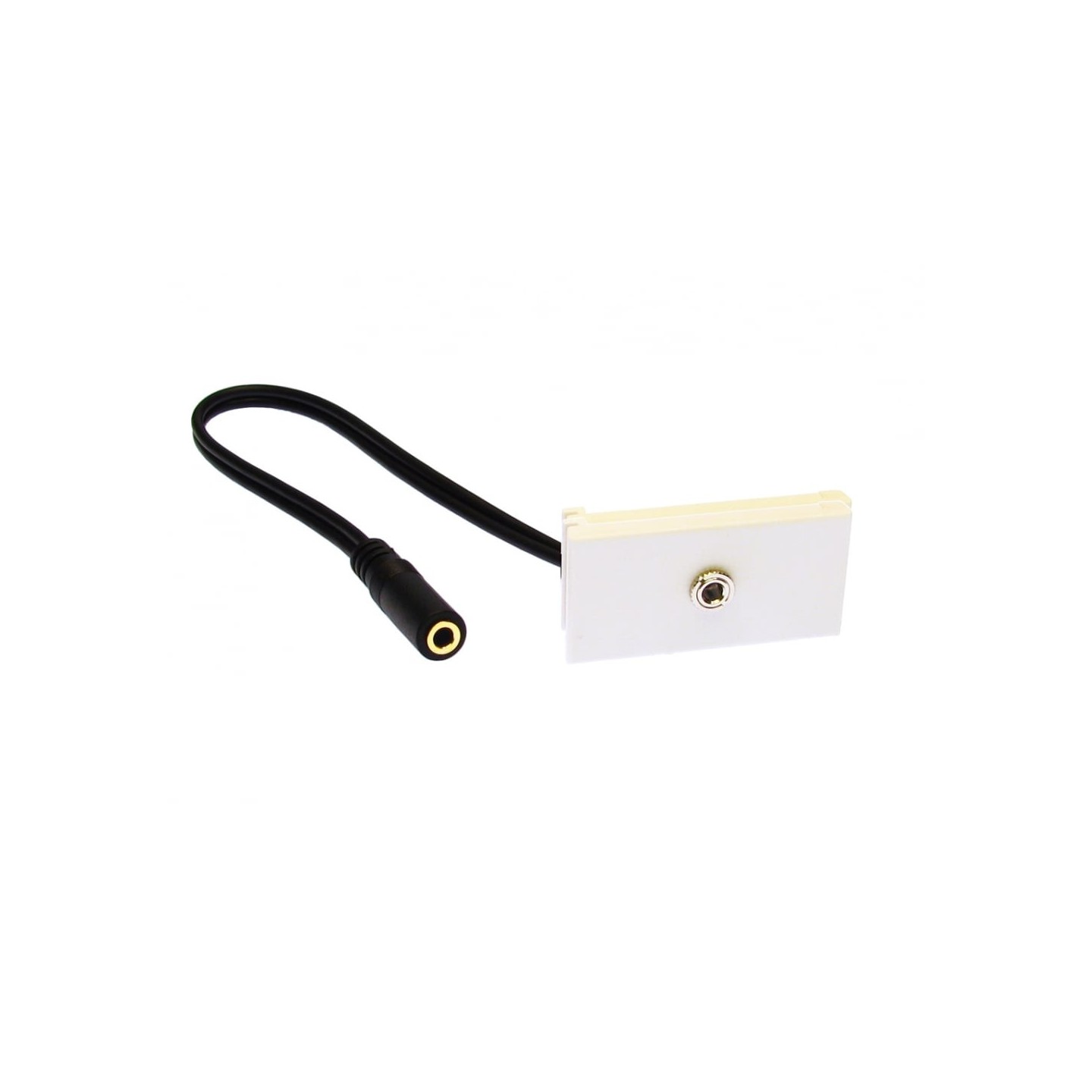 The 3.5mm Stereo module is a 50mm x 25mm clip in Module, the 3.5mm connection is soldered on the back with a short female cable to make a stub.We can supply single and dual faceplates along with back boxes and cables.