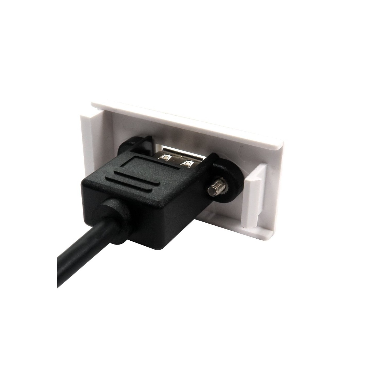 The USB module has a precut slot to fit the USB stub perfectly, can be used with faceplates designed for 50mm x 25mm clip-in modules.We can supply single and dual AV faceplates along with back boxes and cables if required.