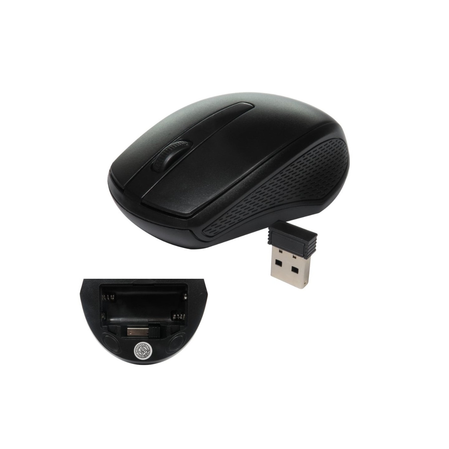 With no software required, just plug the receiver into your USB port to get connected. Stay comfy as you get your work done, no wires to restrict your movement and no cable length to consider. The contoured shape of the mouse feels great in your hand, while the ambidextrous design makes it the perfect choice for both left and right hand use. The scroll wheel is sturdy and durable and acts as a 3rd button, AAA batteries are included to get you started. The wireless dongle is located neatly in the battery compartment.