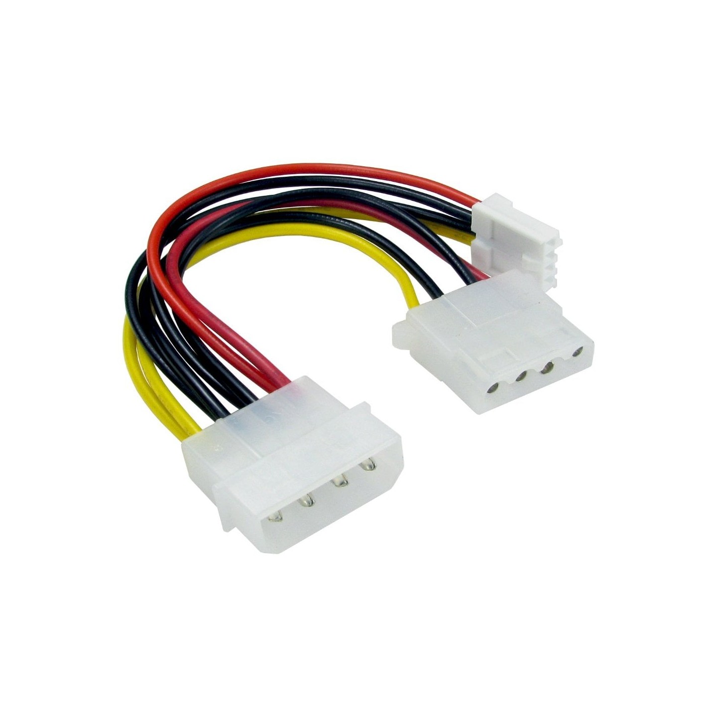 Molex extension 4 pin female to 4 pin male with 4 pin female floppy power (mini-spox). Used for adding a floppy drive connector without losing your 4 pin molex.